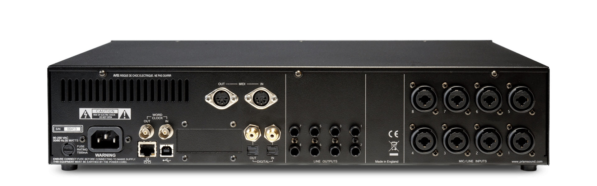 The Atlas boasts 8 ultra-clean, low-noise microphone preamps that perfectly compliment its transparent A/D conversion (with software controllable phantom power, -20dB pad and Overkiller limiter switches on each channel.)