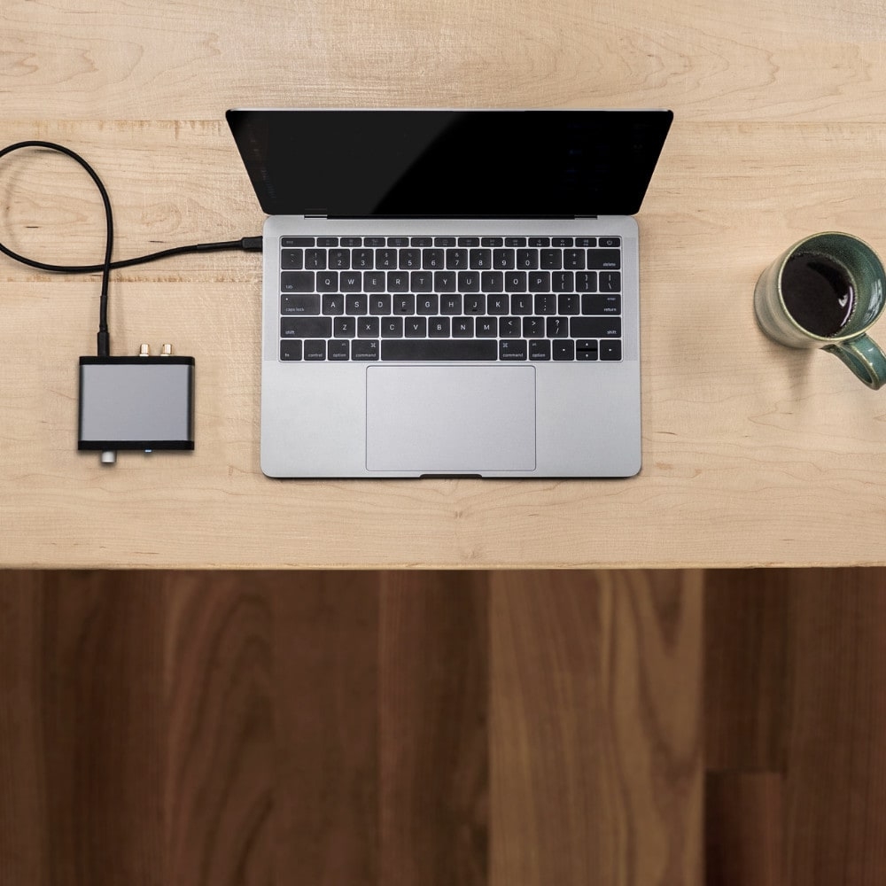 Perfect for providing high quality audio to speakers or headphones, the D1 is a premium 24-bit DAC and headphone amplifier for your computer, TV, and more. The D1 connects to your computer’s USB port or optical output without any software to download, making the D1 quick and easy to set up.