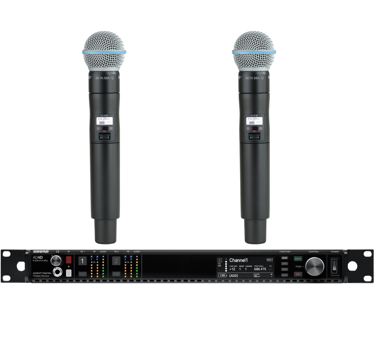 The Shure ULXD2 handheld transmitter with Beta 58A microphone cartridge is designed for compatibility with Shure's ULX-D wireless systems. It's constructed from aluminum with an integrated antenna and features AES 256-bit encryption for secure transmission. It's tuned to Shure's G50 band and transmits between 470 and 534 MHz. It includes a Shure Beta 58A microphone capsule. The Beta B58 handheld wireless microphone transmitter works with ULX-D wireless systems.