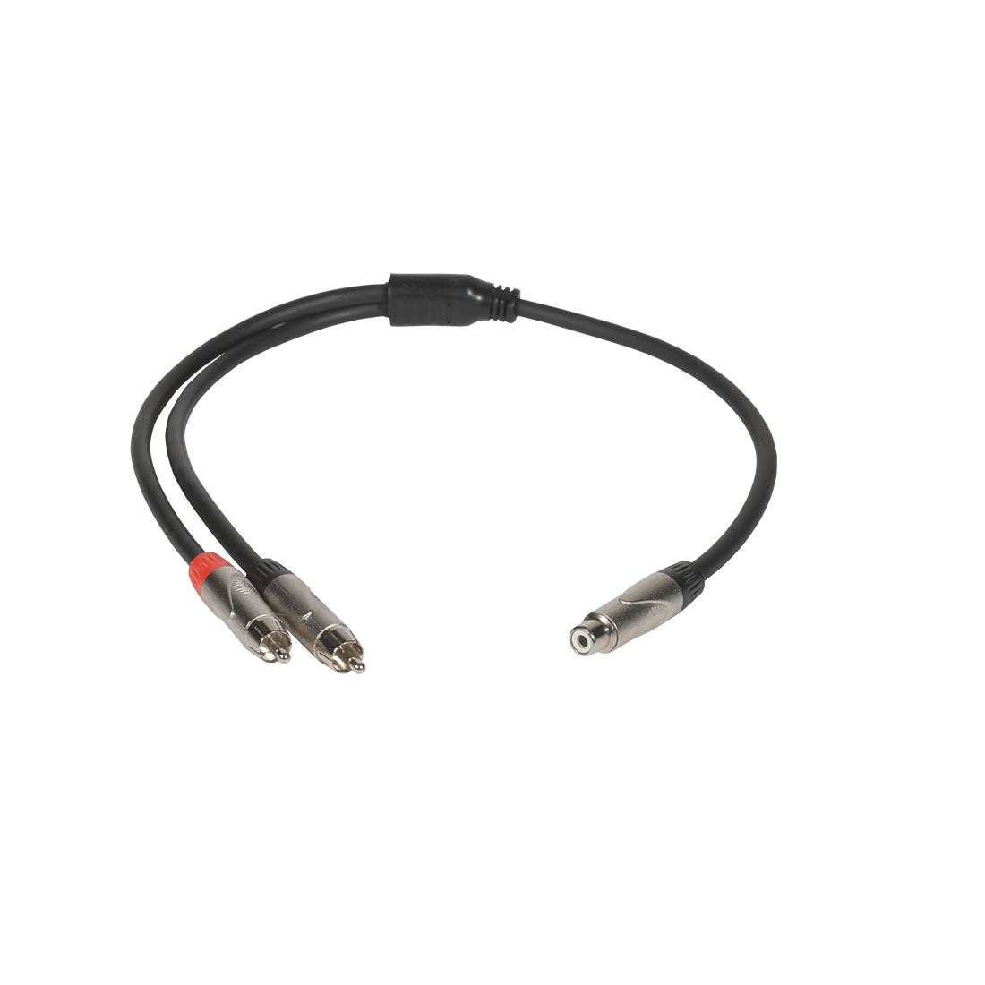 Metro Audio Systems professional cable PY-030/0.5M, type Y, 1 x RCA female to 2 x RCA male, 0.5m. The cable is coated with black PVC, has OFC shielding and is 3 meters long.