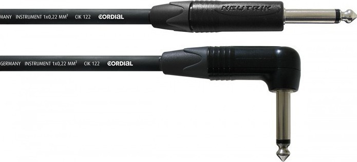 Cable Jack Mono Male 6.3mm - Jack Mono Male 6.3mm Angle with Neutrik connectors and cable Cordial CIK122 with dimension 6m.