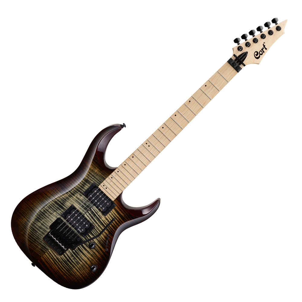 The new X300 features premium materials and components with renowned Cort quality, workmanship and value. Premium-grade Flame Maple is mated with American Basswood body and Maple neck and fretboard for a full range sound that is balanced, deep and cutting simultaneously. The Floyd Rose Special tremolo allows for extreme dive-bombing and harmonic squeals while providing perfect tuning stability and the EMG Retroactive Hot 70 pickups deliver plenty of output with classic warm-sounding character.