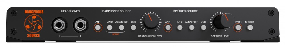 The Dangerous Source lets you listen to any combination of four input sources; you get two speaker outputs and two headphone outputs. You can let the singer hear her own personal headphone mix, for instance, from the Analog 2 input - while you monitor the real mix, coming in from your computer via the USB input (which can run up to 24-bit/192kHz). The Dangerous Source gives you the monitoring flexibility to handle virtually any monitoring situation that might crop up.