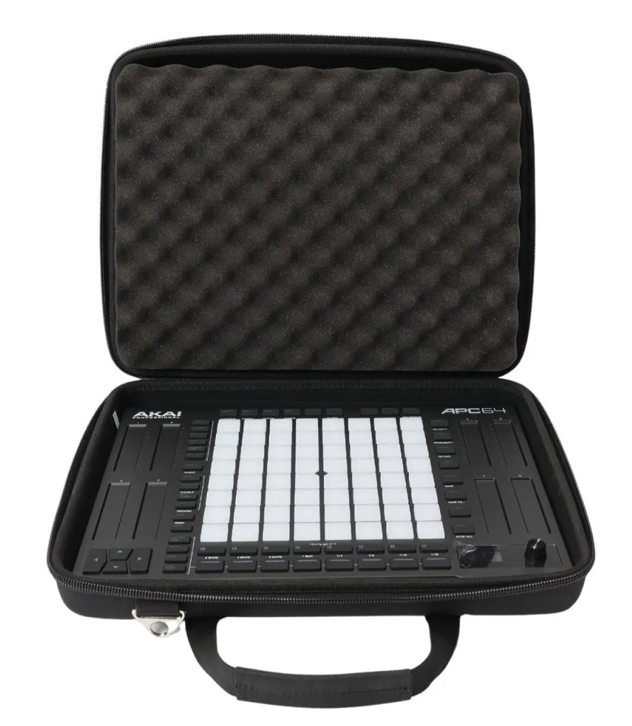 Magma CTRL Case APC 64, custom designed to a hold the new Akai APC 64. Crafted from 6 mm thick and rigid Durashock molded EVA foam and water rejecting polyester exterior shell. Features, a sturdy zipper, a practical cable organizer panel, removable egg-foam and is compatible with Decksaver cover.