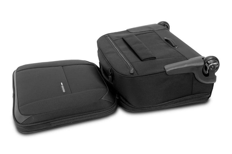 Extra's Pockets for audio interface and DJ Headphone. Compartment for cables and smaller gears. Retractable handle with 4 stage internal trolley system. Smooth rolling in-line wheels.
