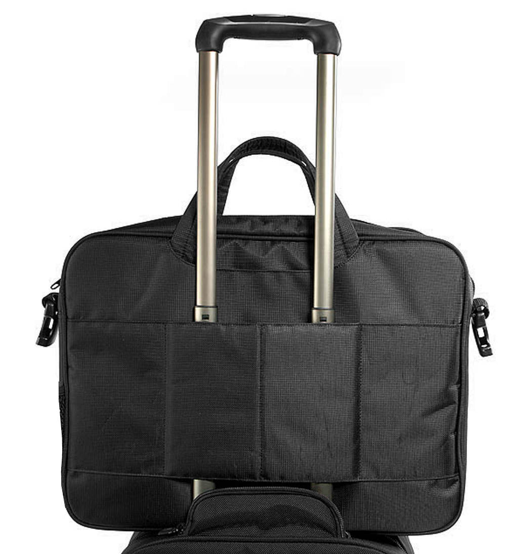 • Ergonomic removable shoulder strap. Top carry handles. Slides over any trolley.