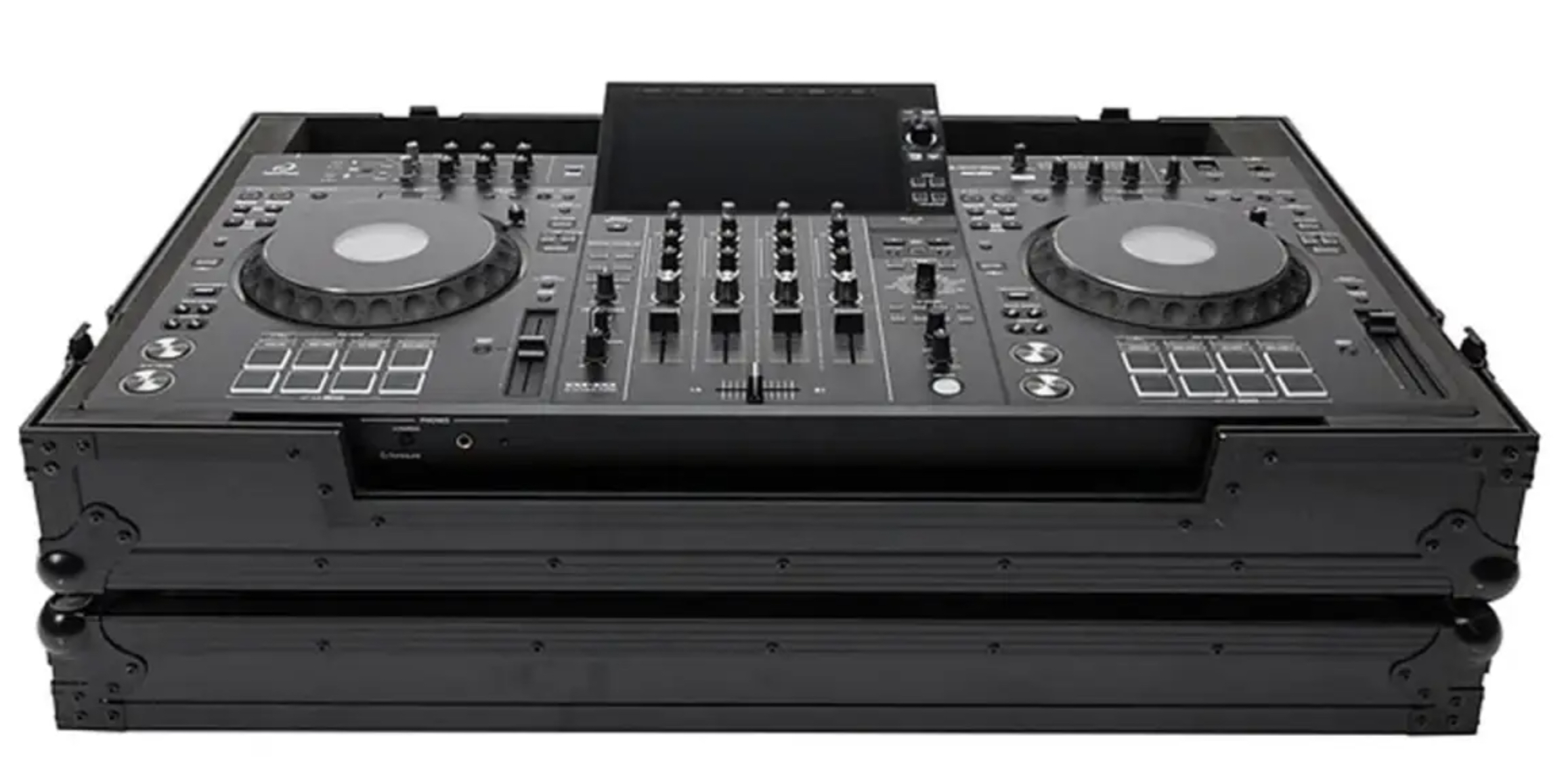 Customized to transport and protect the new AlphaTheta XDJ-AZ DJ-Controller. Crafted from 9 mm vinyl laminated plywood, sturdy aluminum profiles and heavy duty butterfly latches, it provides you with secure transport and workstation in one. Thanks to the integrated gliding laptop platform and the convenient cable access port, the setup is ready for action in no time at all.