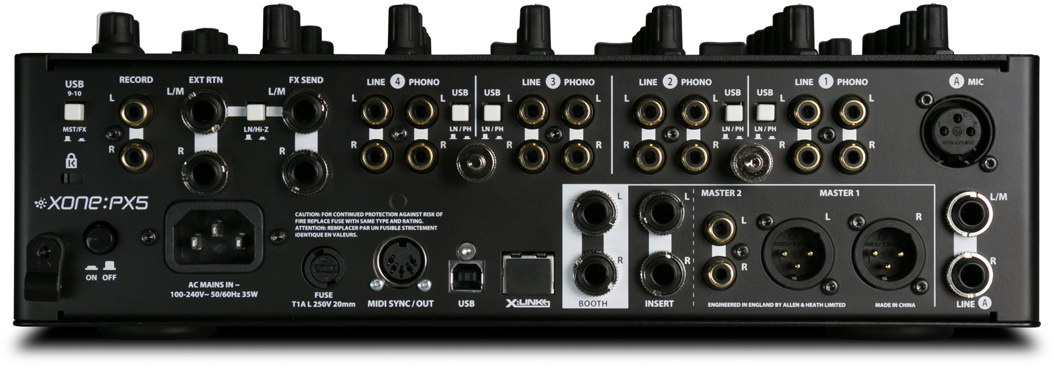 The versatile Send/Return feature allowing for the connection of external FX hardware with both Send/Return and Master Insert mode connections (Line or Hi-Z) equips Xone:PX5 for numerous enhanced setup scenarios. Each channel has its own dedicated send control for external FX processing and can also be routed to the internal Xone:FX engine.
