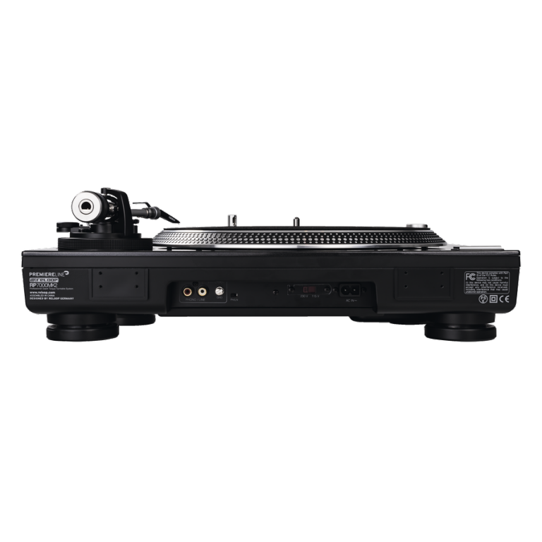 Thanks to the recessed rear connection panel, the RP-7000 MK2 can easily be mounted in a flight case and seamlessly positioned next to other DJ gear. The switchable integrated phono pre-amp makes it is possible to use the gold-plated RCA connectors for both phono and line output signals. An optional ground terminal offers additional protection in club environments. All cable connections (RCA/mains) are detachable and easy to exchange, which also helps with transport and storage.