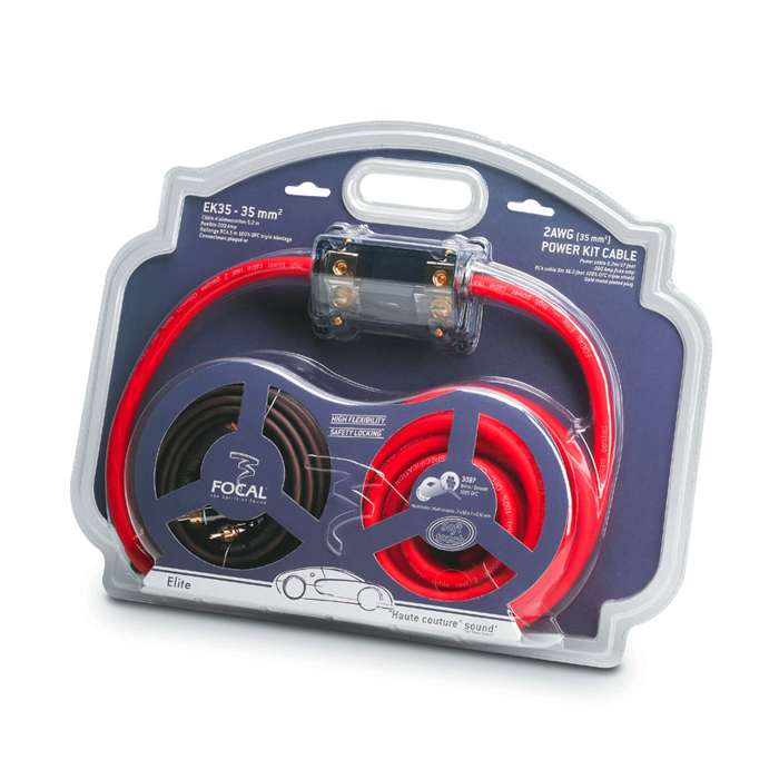 This ‘ready-for-use’ wiring kit includes the best in terms of high-end connectivity: 17ft (5.20m) x 35mm2 (3087 strand) 100% OFC power cable, 2ft 3in (0.70m) ground cable, gold-plated fuse holder with a 200A fuse + equipped with a digital battery reader, an ER5 RCA cable, and a set of accessories. This kit is ideal for a 1500W amplifier. Focal recommends connecting this kit to the FPS 3000 or to a system with an amplifier and a subwoofer wired in series.