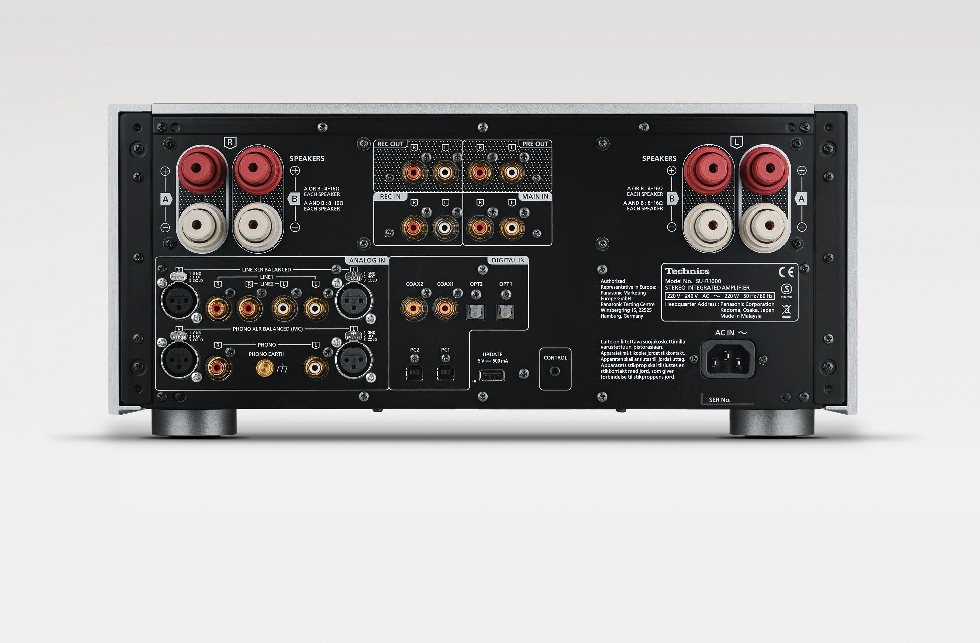 The phono input section and analogue input section feature a full-discrete circuit design. Technics has realised an ideal, symmetrical circuit layout and performed meticulous tuning. The new circuits prevent interference between the right and left channels and achieve excellent channel separation. Furthermore, the phono input section and XLR input section employ completely balanced transmission to ensure high-purity signal transmission with minimum effect of noise. The USB input circuit in the digital input section is equipped with a capacitor of high-quality ruby mica and a power conditioner with nonmagnetic carbon film resistors for blocking electrical noise e.g. from a PC and for minimising the effect of external noise.