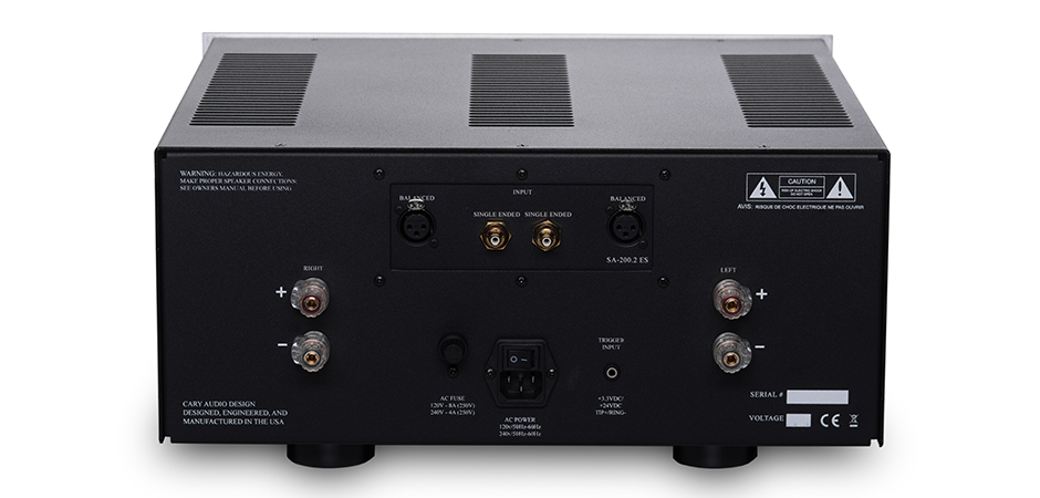 The SA-200.2 ES is a 200 watt stereo amplifier into 8 ohms, (350 watts into 4 ohms), with balanced and single ended inputs. The amplifier exhibits very high current capability, is stable into low impedance loads, and features 3 dB of dynamic headroom.