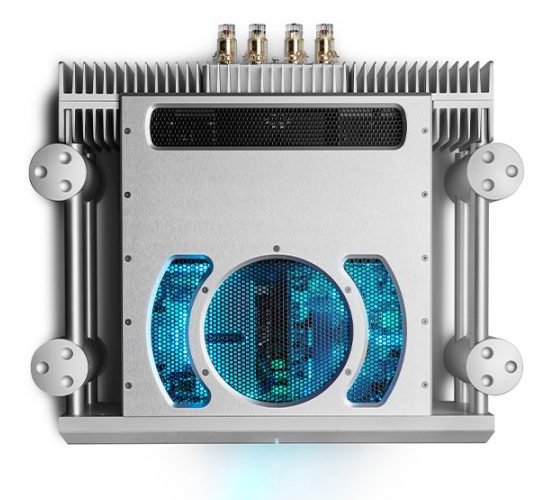 The amplifier’s rear panel contains both balanced and unbalanced connections, high-quality loudspeaker terminals, a 12 V trigger and a C-19-type IEC.