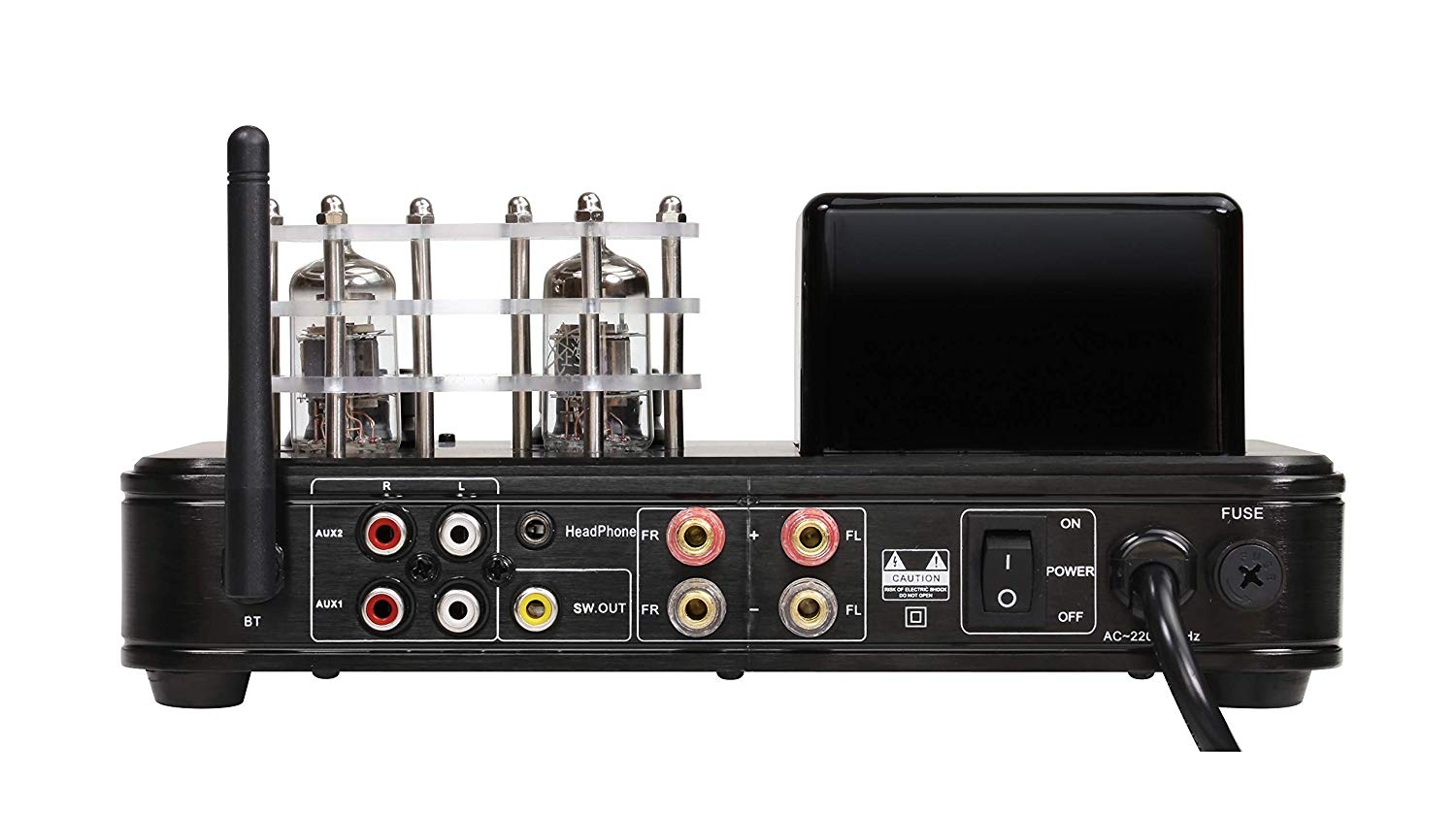 The BT signal reception as well as the built-in USB audio player (supports MP3, WAV, APE, FLAC) complete the package. There are also the two visible tubes, which process the signal input and give a light tube-like warmth to the sound and a sleek aluminum enclosure. Banana jacks with additional screw / clamp fixing for cable without plug.