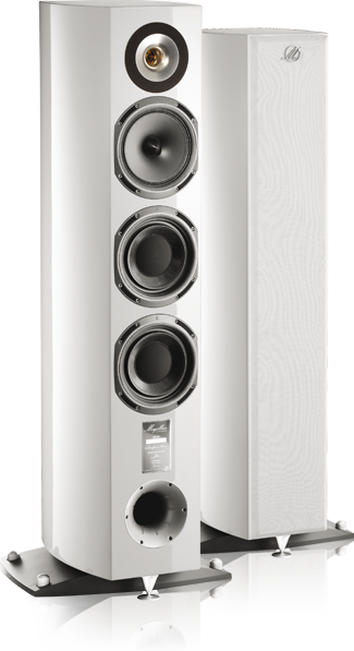The listening experience is pure unlimited pleasure regardless of the type of music, delivered with magnificent scale and it’s never tiring. It has a wide array of musical skills. It’s as perfectly at ease at high volume level as it is for intimate listening, and is suitable for rooms measuring 25 to 50 m2. The sandwich technology developed by the aerospace industry ensures that the two bass drivers are extremely lightweight and also particularly rigid.