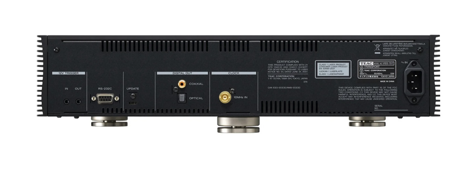 The VRDS-701T CD transport utilizes our newly-developed VRDS mechanism. The VRDS is a TEAC-original CD drive mechanism that reduces rotation vibration and other unwanted vibration by clamping the CD to an aluminum turntable with the same diameter in order to maximize inertial mass. When used in combination with a UD-701N playback is possible using the discrete DAC in the UD-701N as well as with MQA full decoding. Of course, you can also use it together with a DAC of your choosing, and build a system as you like. The inclusion of a 10MHz clock input enables flexible integration with systems that are synchronized using an external clock.