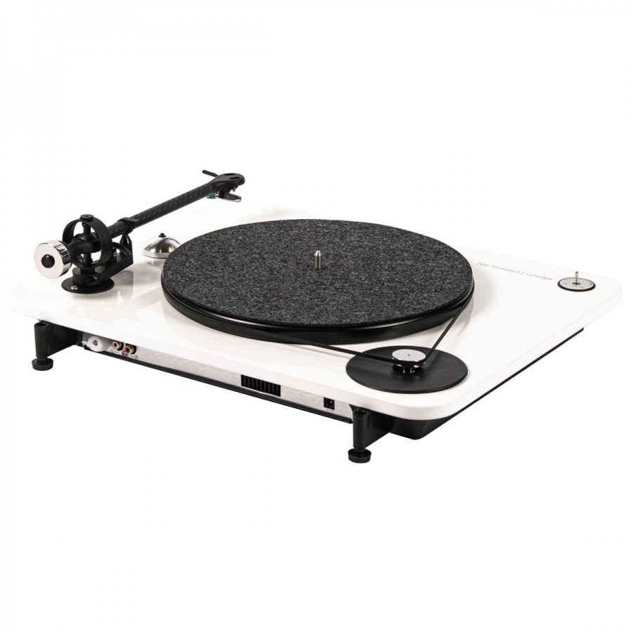 The Elipson Chroma 400 offers the characteris-tics that contributed to the success of the Omega models such as the OTT (Orbital Torsion Tonearm) tonearm in carbon, its digital processing system of the motor rotation. It is distinguished by a new axis system for an even more precise rotation, an improved drive motor with optimized damping, a graduated counterweight, as well as by the addition of a cue control lever for your comfort of use.
