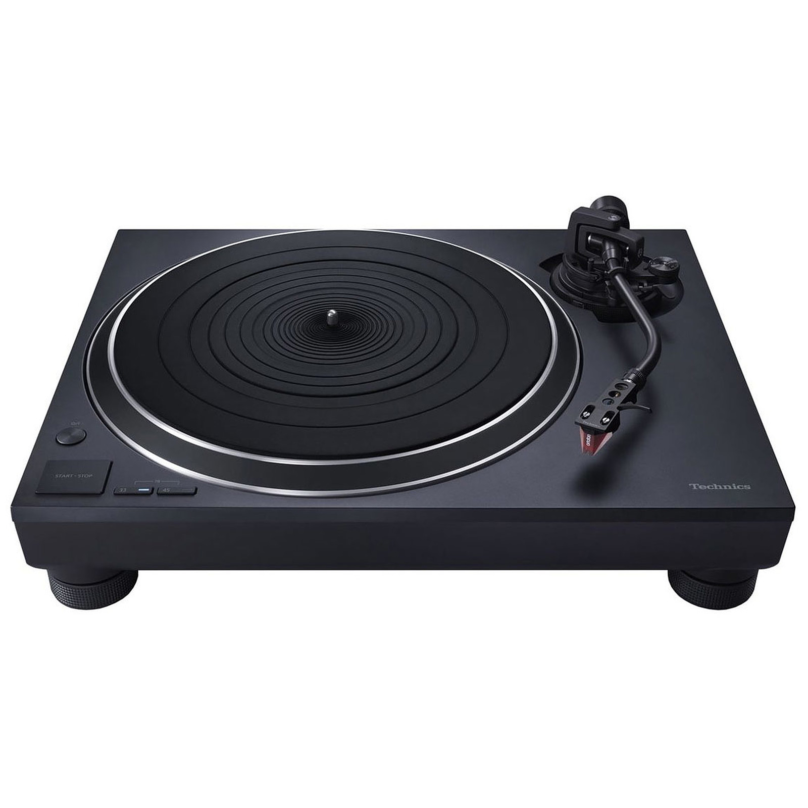 The aluminium die-cast chassis is rigidly integrated with a special material consisting of ABS mixed with glass fiber to achieve a two-layer construction. The insulator is comprised of a spring and rubber to provide optimal vibration-damping characteristics. The tonearm is a static-balance universal S-shape tonearm, another Technics tradition. By adopting a high-precision bearing using the same gimbal suspension construction and machined housing as the SL-1200 Series, high initial sensitivity is achieved. In addition, reliability has been improved by incorporating a removable power cable and gold-plated terminals, which have less sound quality degradation, for the PHONO and LINE terminals.
