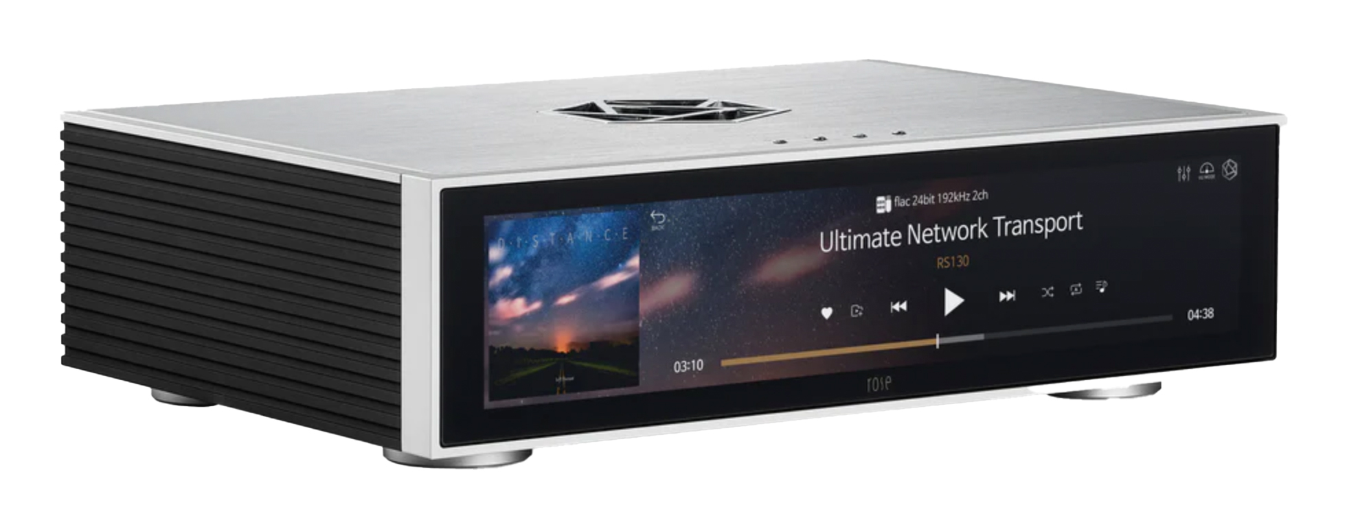 Designed to captivate audiophiles both audibly and visually, the RS130 boasts exquisite crystal buttons that exude class and elegance. Complemented by a novel symbol logo-inspired ventilation hole, the RS130 ensures efficient heat dissipation while adding a touch of sophistication to your space.