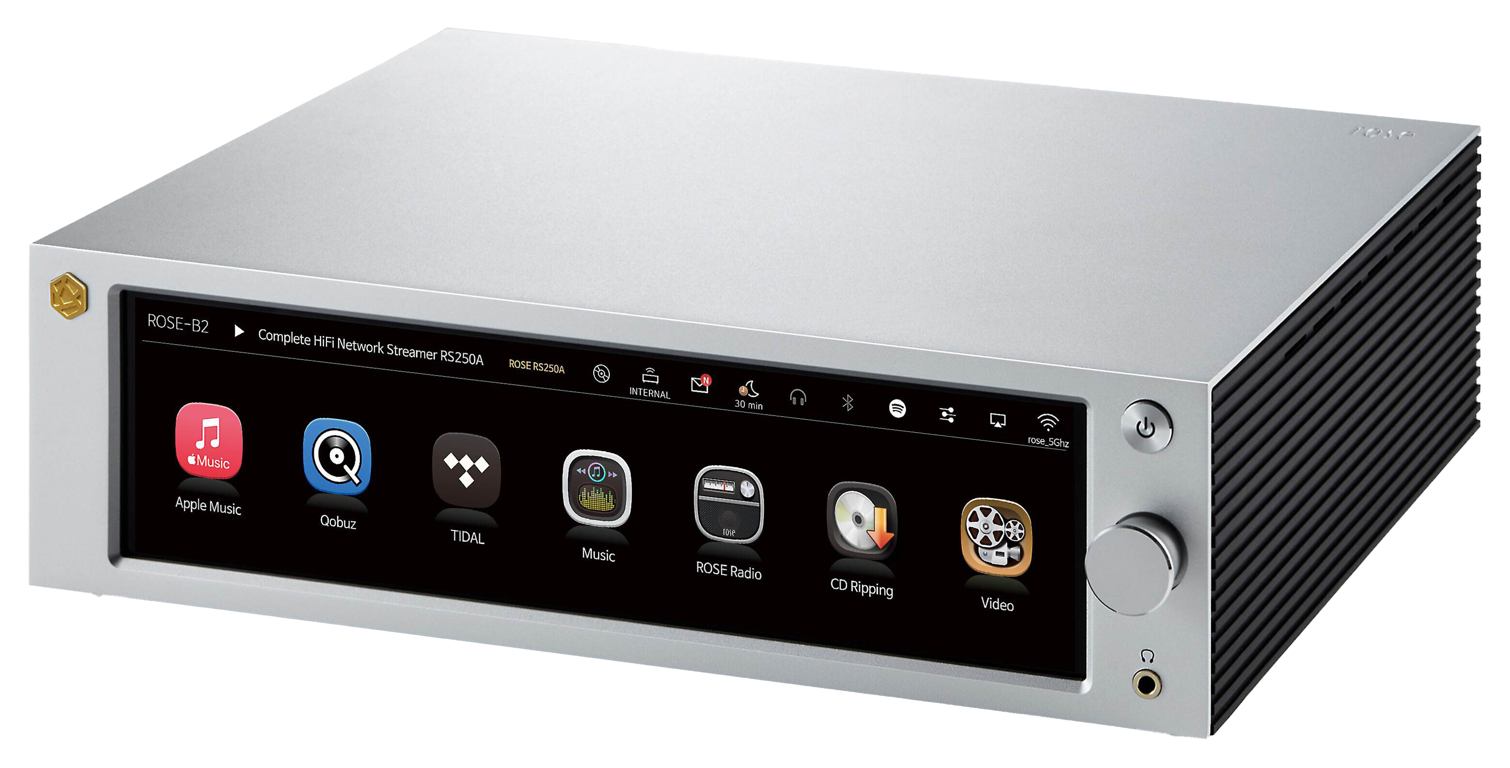 The HiFi Rose RS250A is a Network Streamer, DAC, and pre-amplifier that allows you to immerse yourself in the sonic tapestries of timeless albums, as well as the engaging graphics and dynamic performances of the latest music videos. The RS250A is ideal for the voracious music fan who wants to access entertainment with a simple touch of the finger.RS250A utilizes rigid aluminum panels to isolate micro-vibrations and maximize thermal efficiency.