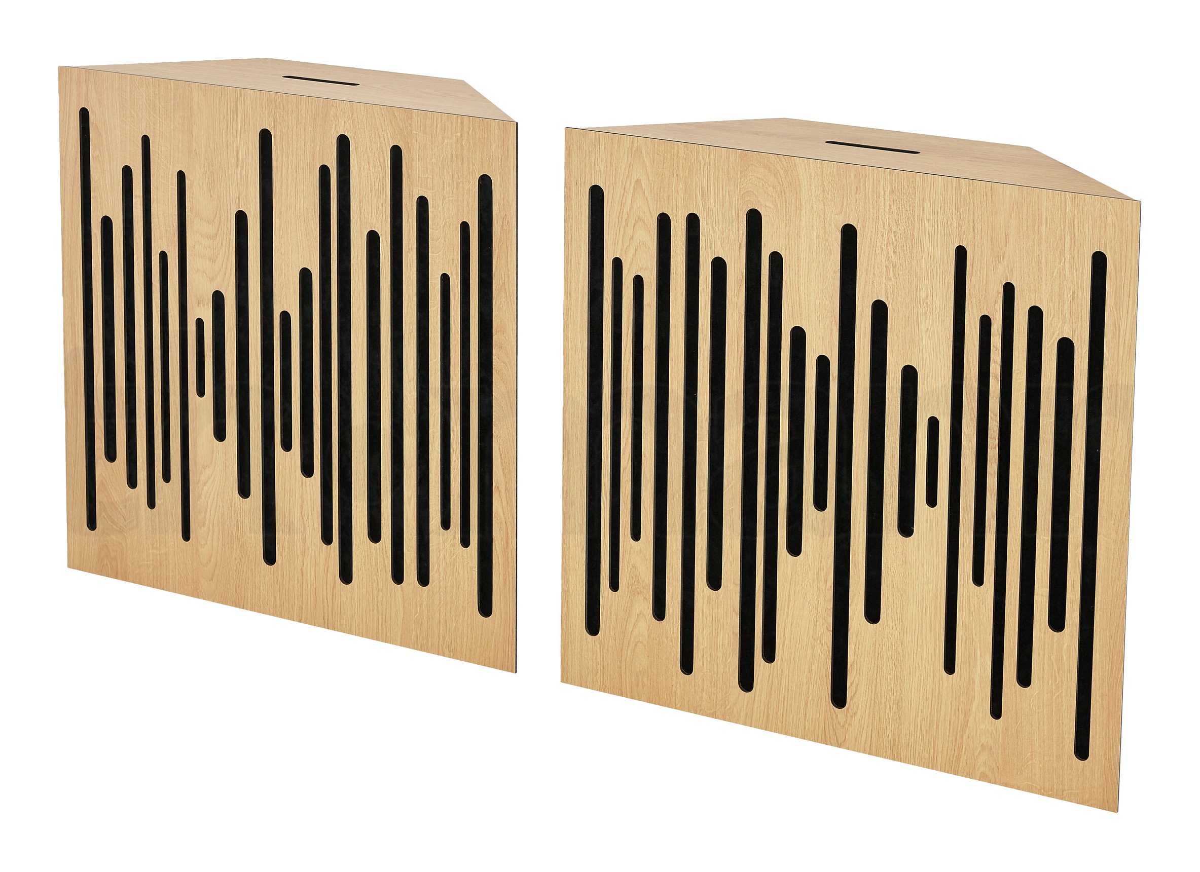 Super Bass Extreme Ultra’s elegant wooden front is based on Vicoustic’s flagship Wavewood panel. Appropriate for corner mounting, it provides effective low frequency absorption between 60-125Hz, and delivers maximum effectiveness between 75 -100Hz.