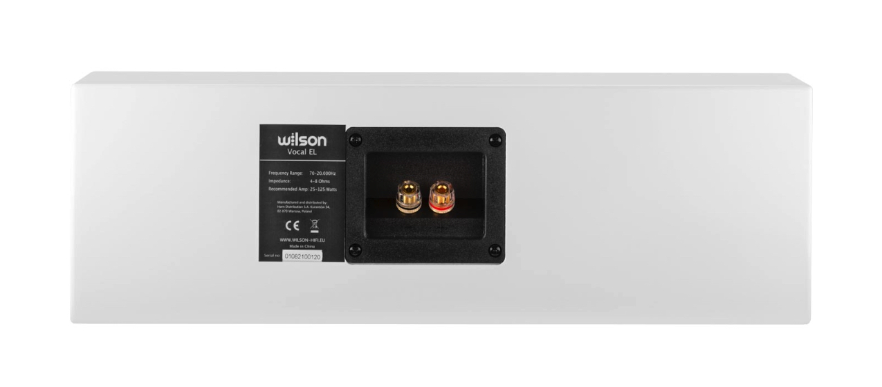 Wilson Vocal EL, premium center speaker suitable for home cinema systems, recommended for amps 25-125 Watts at 4-8 Ohm, max SPL 108dB, 88dB sensitivity and 50 - 20.000Hz frequency response.