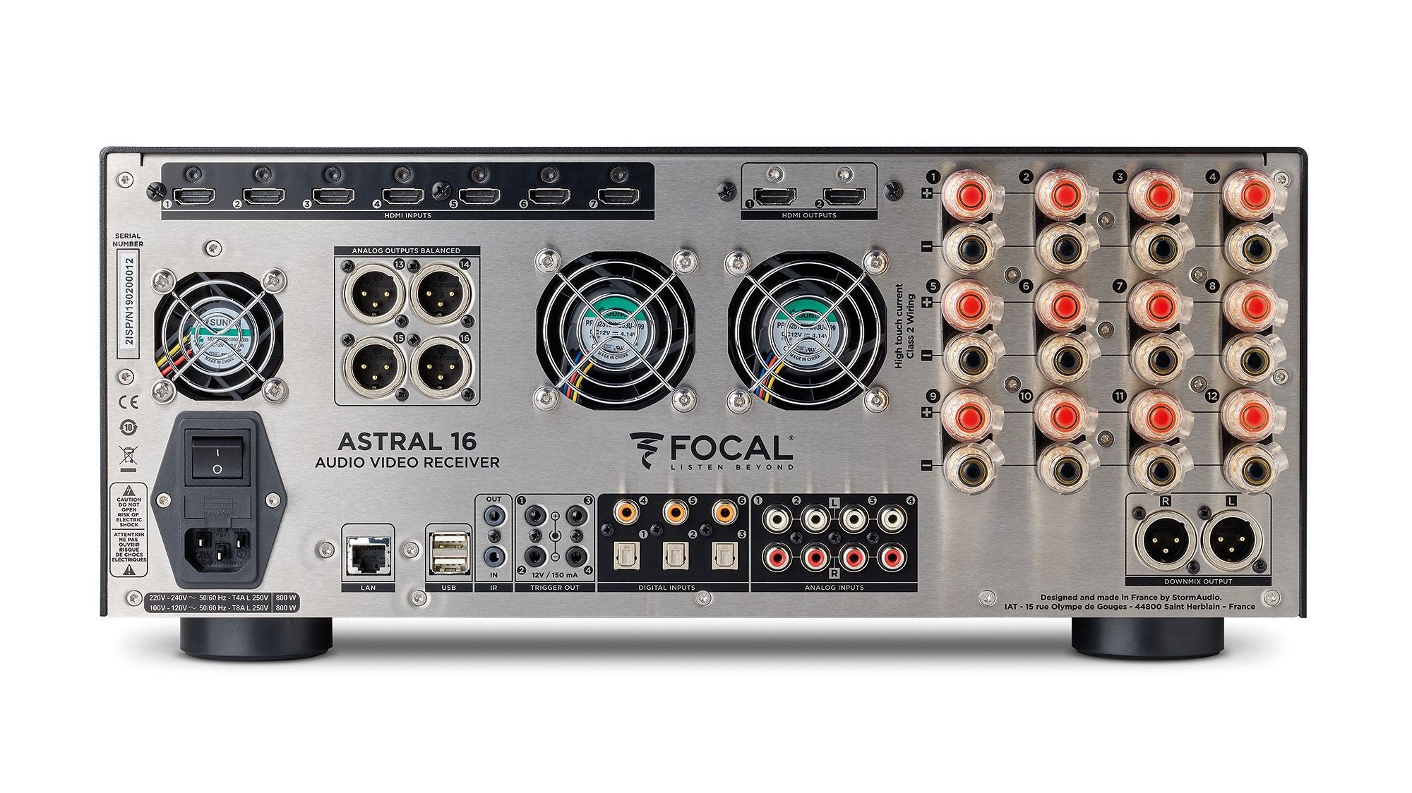 Integrating a Class D Pascal Audio amplifier, Astral 16 has 16 channels, of which 12 are amplified and 4 are pre-amplified (balanced XLR outputs) and dedicated entirely to audio (filtering, equalization, bass management, etc.).