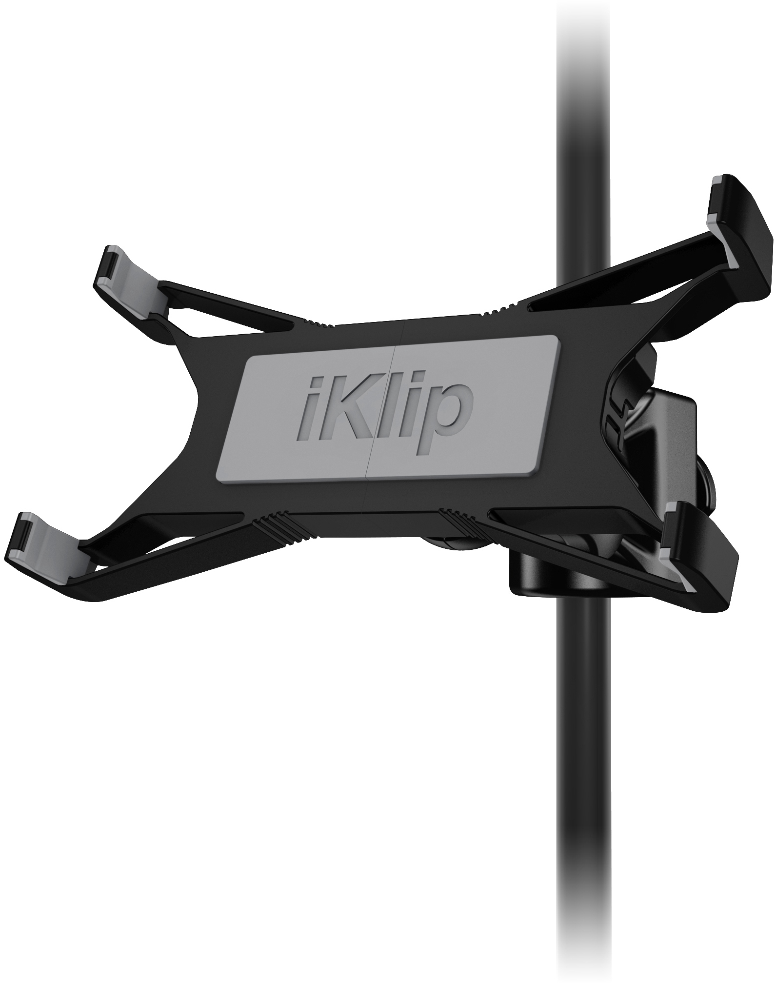 Adjustable mic stand clamp can be mounted on a vertical pole or horizontal boom with a diameter of up to 1.2" (30mm) Two sure-grip rubber gripping points and rubber padded base that support the tablet securely without scratching or marring its surface Comes with iKlip Stage, a powerful page turning and music score management app Designed and made in Italy"