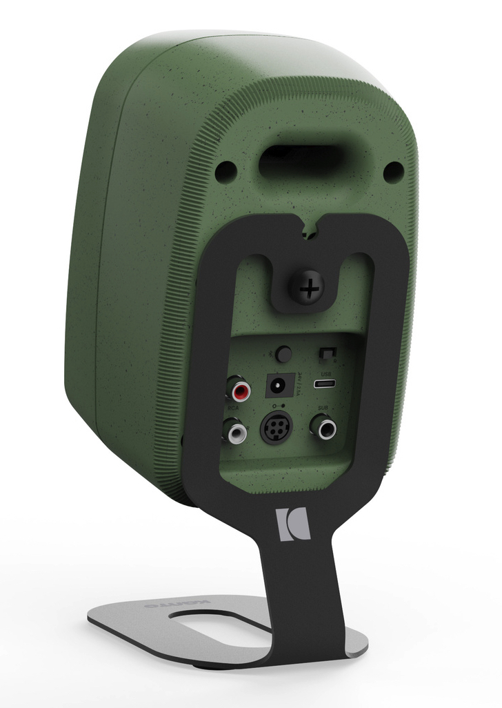 The stands attach securely to the rear of the speaker using the included ¼”-20 screw, while maintaining full access to rear ports and showcasing the clean design of the Uki & Ora speakers.