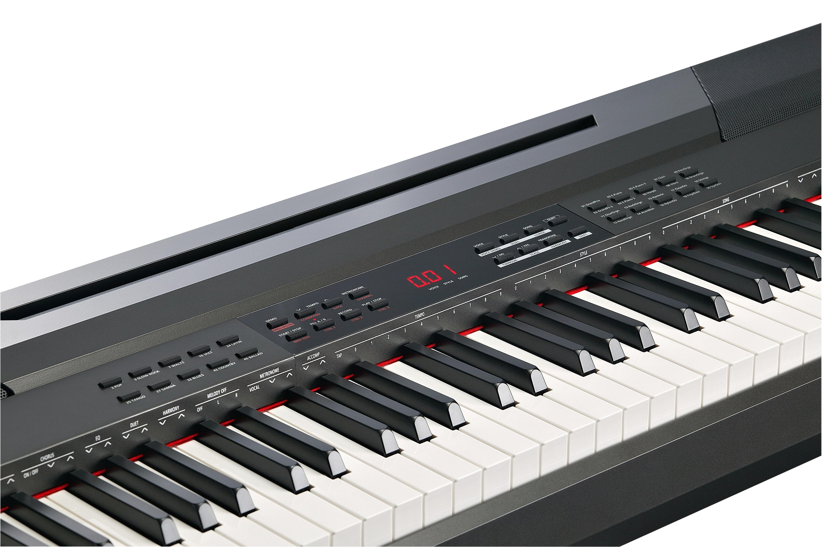 - Keyboard: 88 Note fully weighted, hammer action with adjustable touch sensitive keys