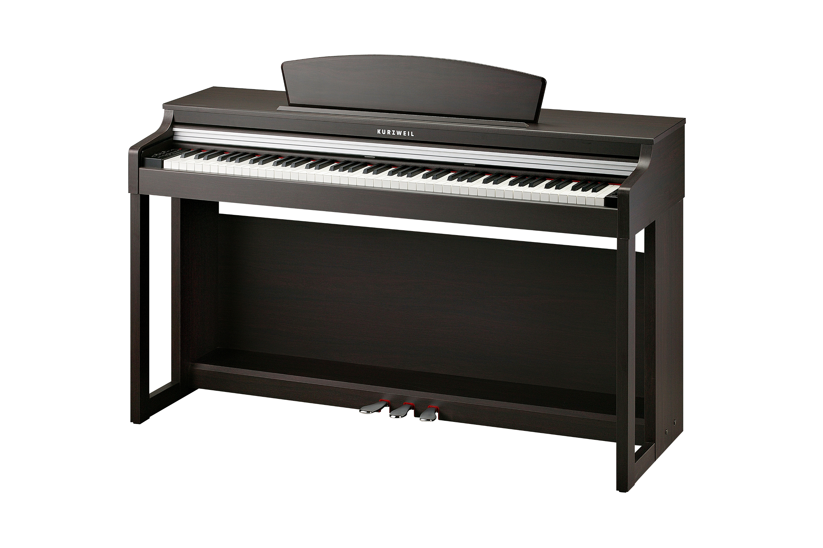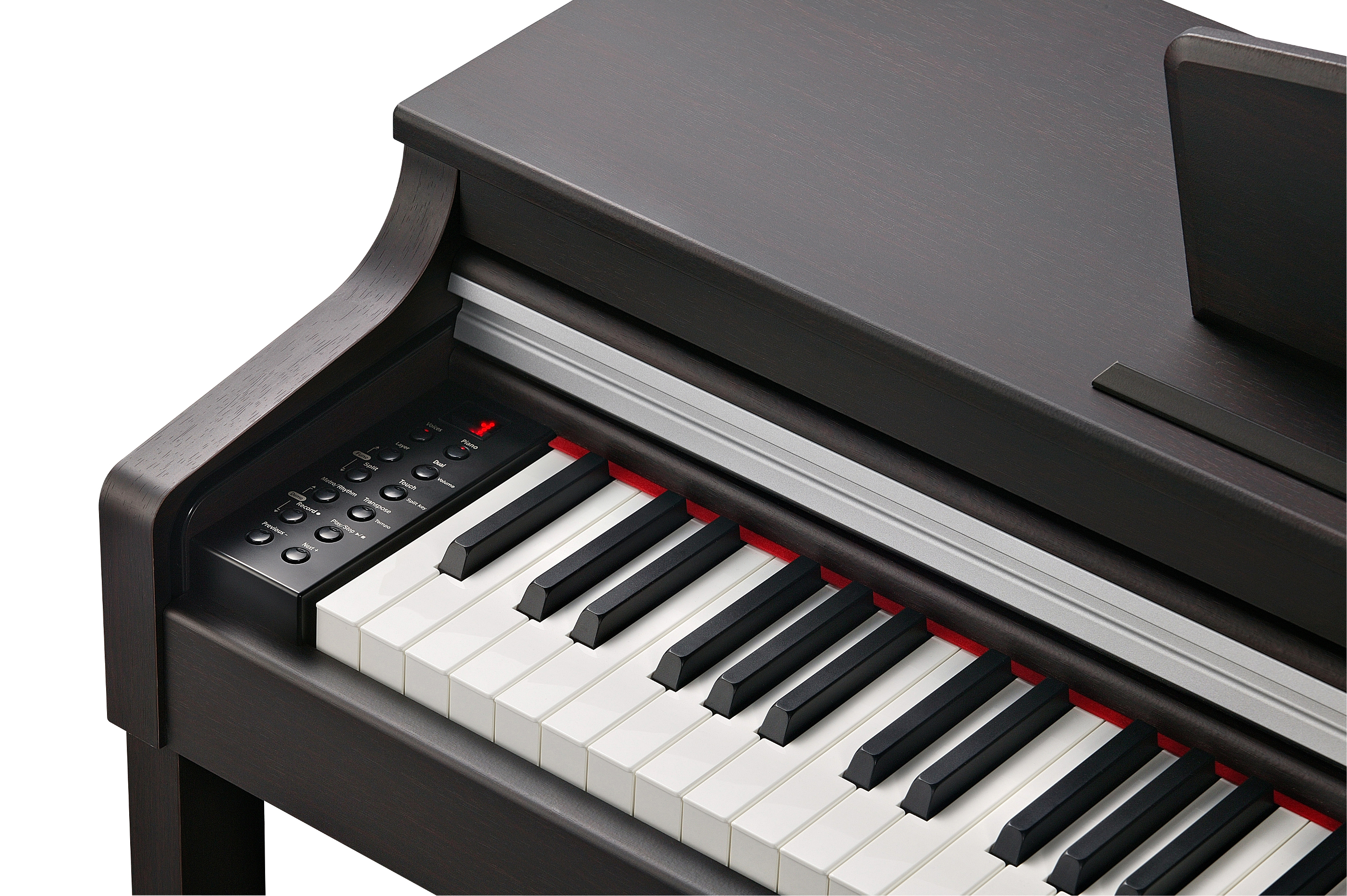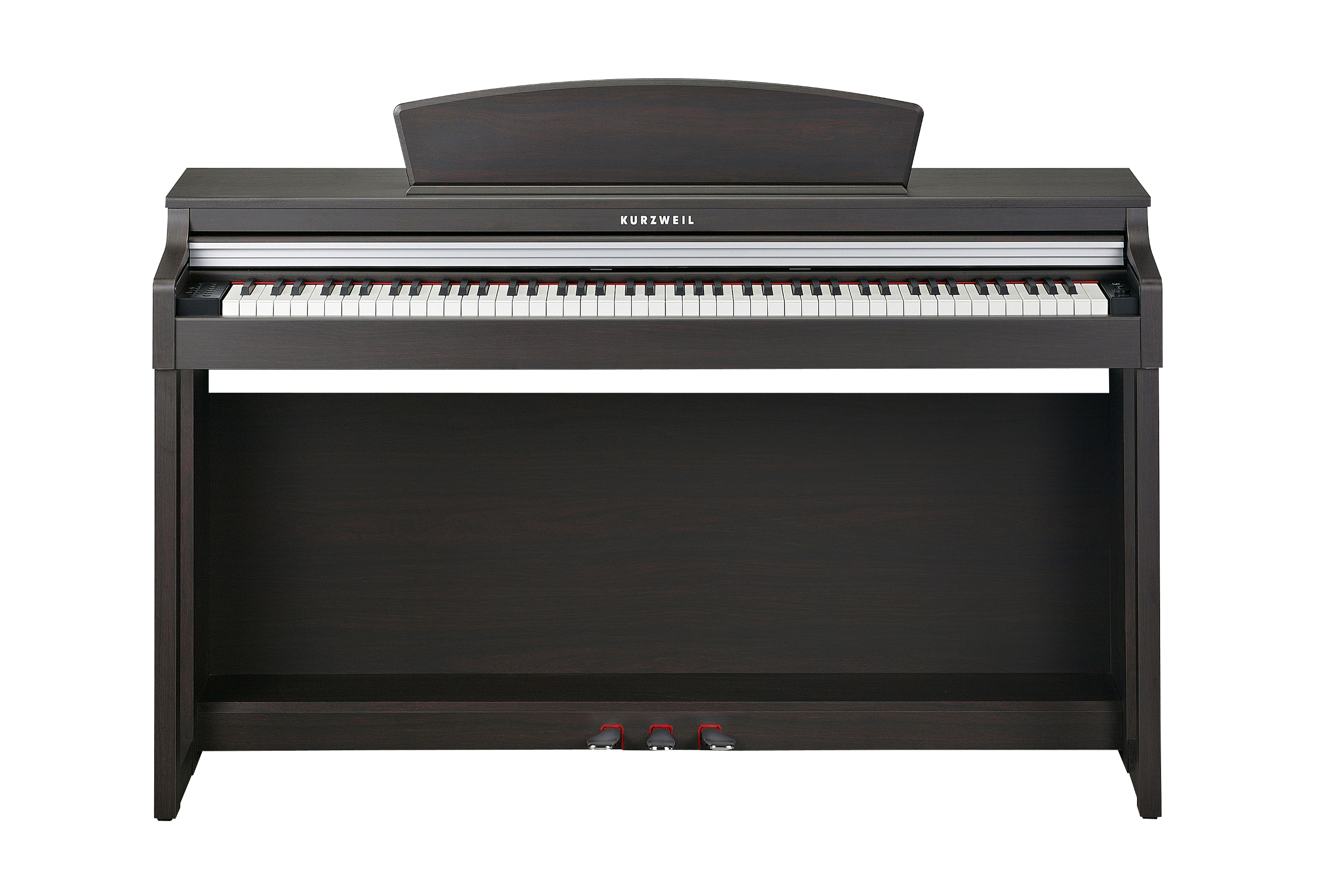 M230 cabinet Spinet-stye cabinet available in simulated rosewood or white finishes, featuring a 20 Watt, 2-speaker, stereo sound system, built-in music stand and slide-out fallboard.