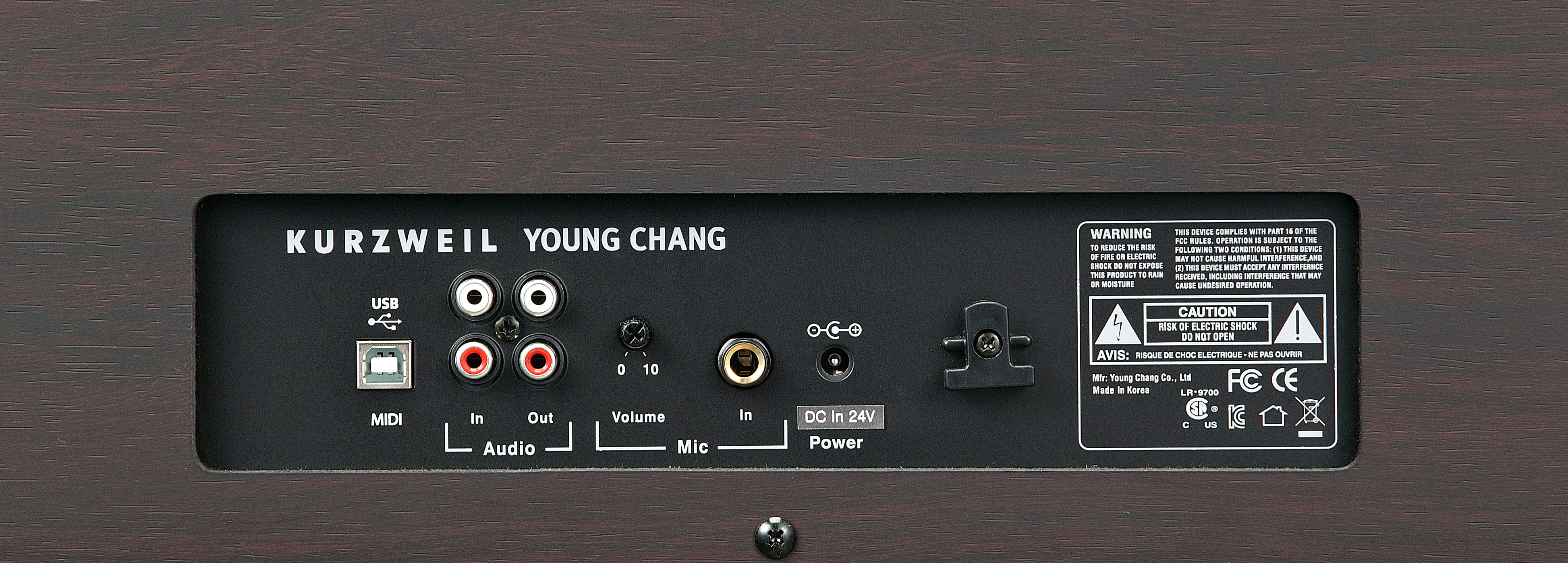 - Pedals: (3) built-in switch-type sustain, sostenuto, soft