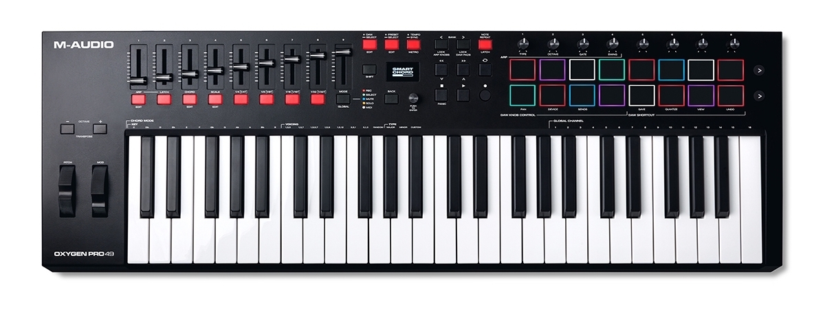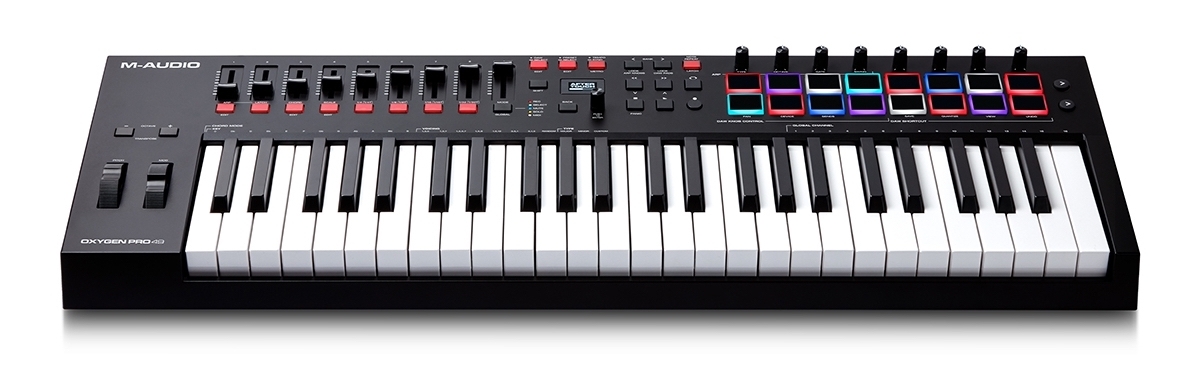 The Oxygen Pro 49 is a powerful, 49-key USB powered MIDI controller that allows you to create the music you want to make even easier! The new Oxygen Pro controllers open up worlds of expression and creativity and make bringing your production ideas to life more seamless than ever. Taking feedback from users and artists alike, these controllers are the ultimate studio and live performance tools, allowing you to keep your focus on creating music—not programming your software. It doesn’t matter if you want to create music on the go or in the studio, the M-Audio Oxygen Pro series is perfectly flexible for your workflow.