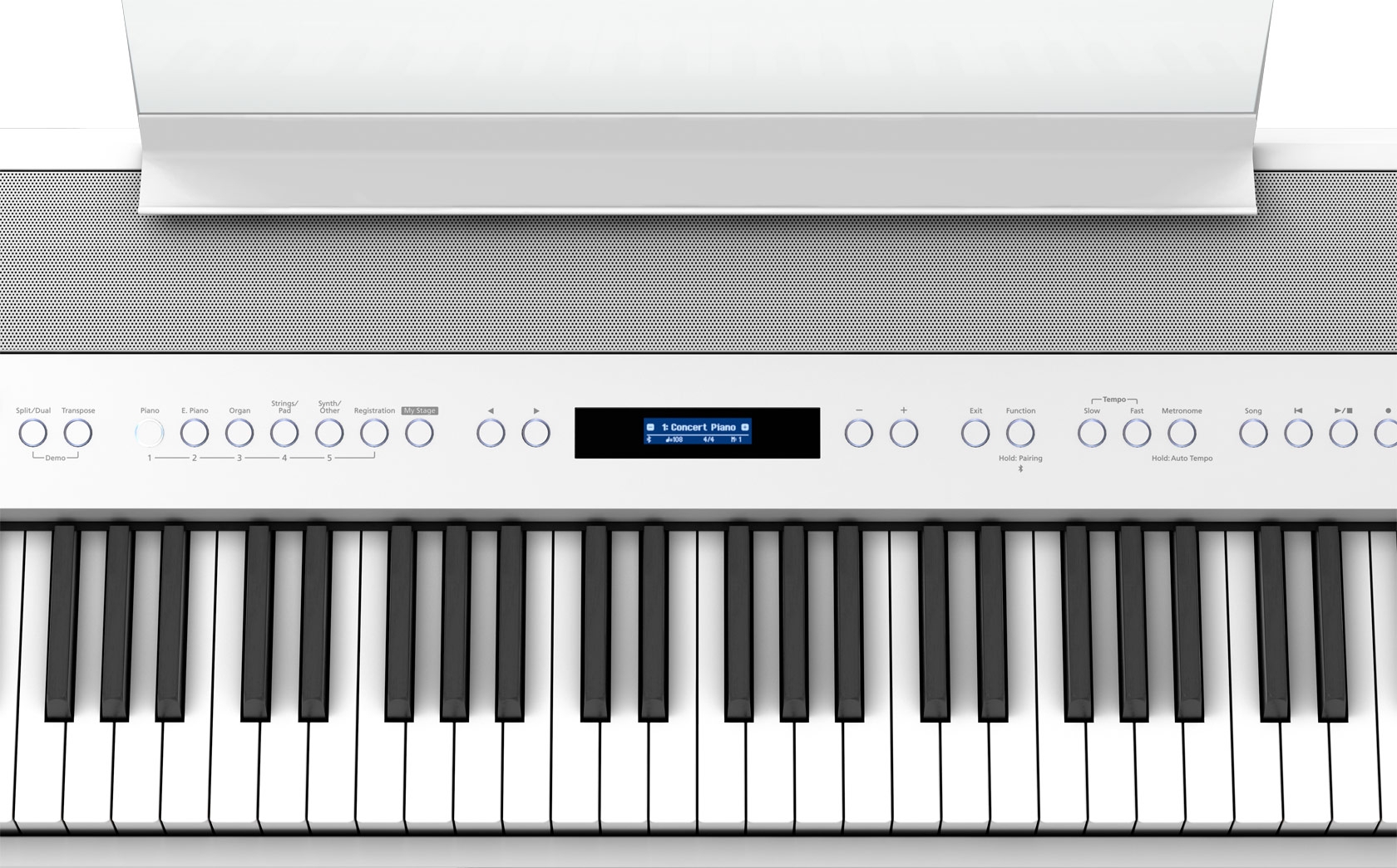 The FP-90X’s PHA-50 keyboard—also found in Roland’s top-level home pianos—is an innovative hybrid that gives you the best of both worlds, combining the feel and texture of acoustic piano keys with unbeatable durability. The warm touch of the wood sides will be instantly familiar to seasoned players, while the composite center frame extends from the front of the keys to the back for a stable, assured touch. A crafted hammer action mechanism ensures authentic response, while the look and feel of ivory and ebony are reproduced in minute detail. It’s just like playing a traditional acoustic grand—minus the regular maintenance.