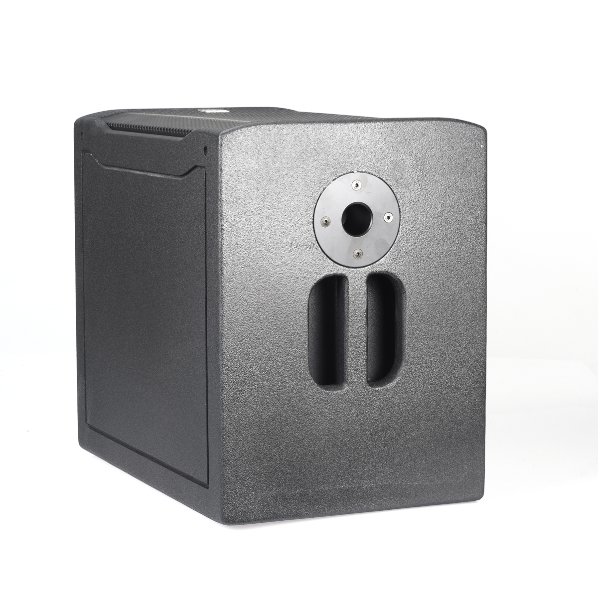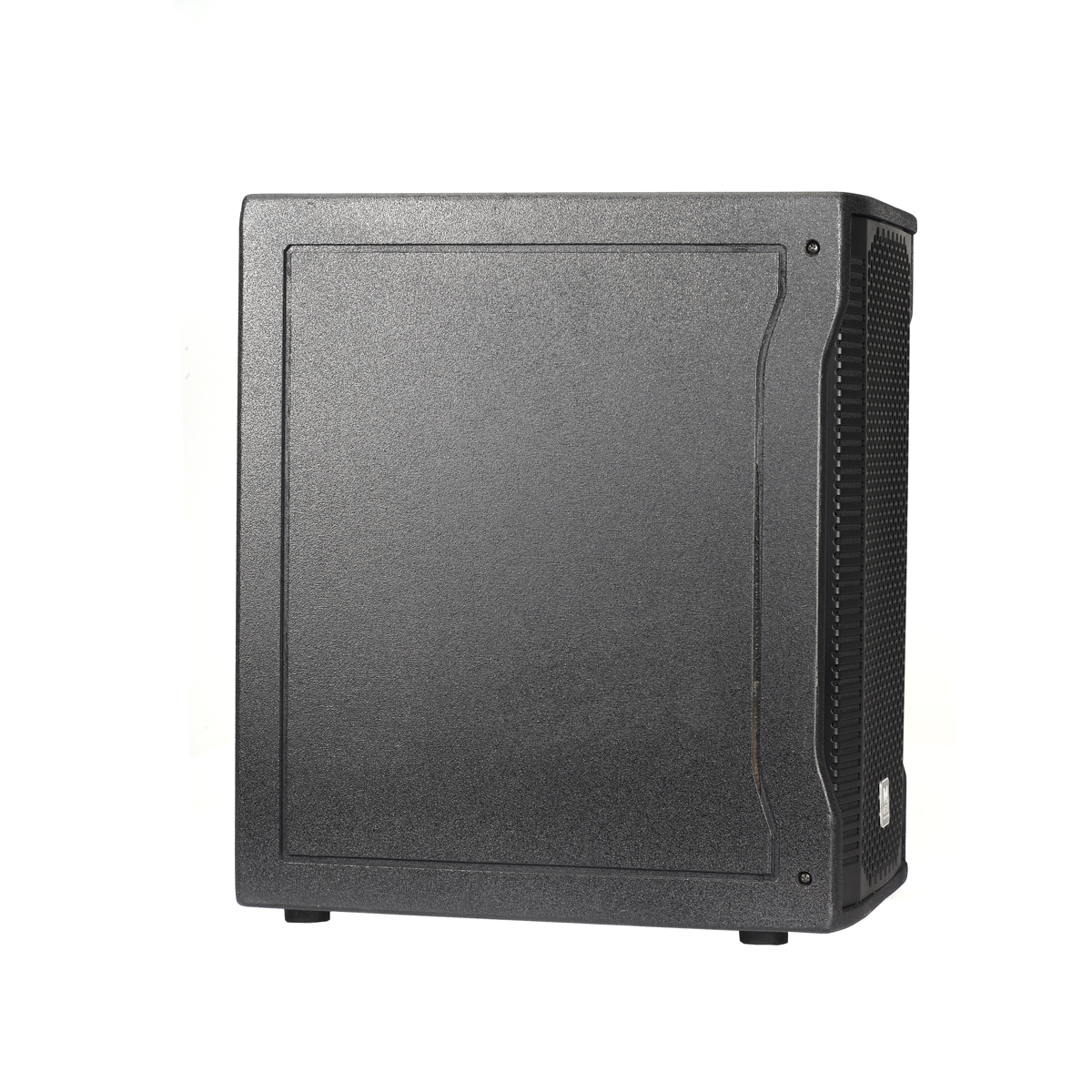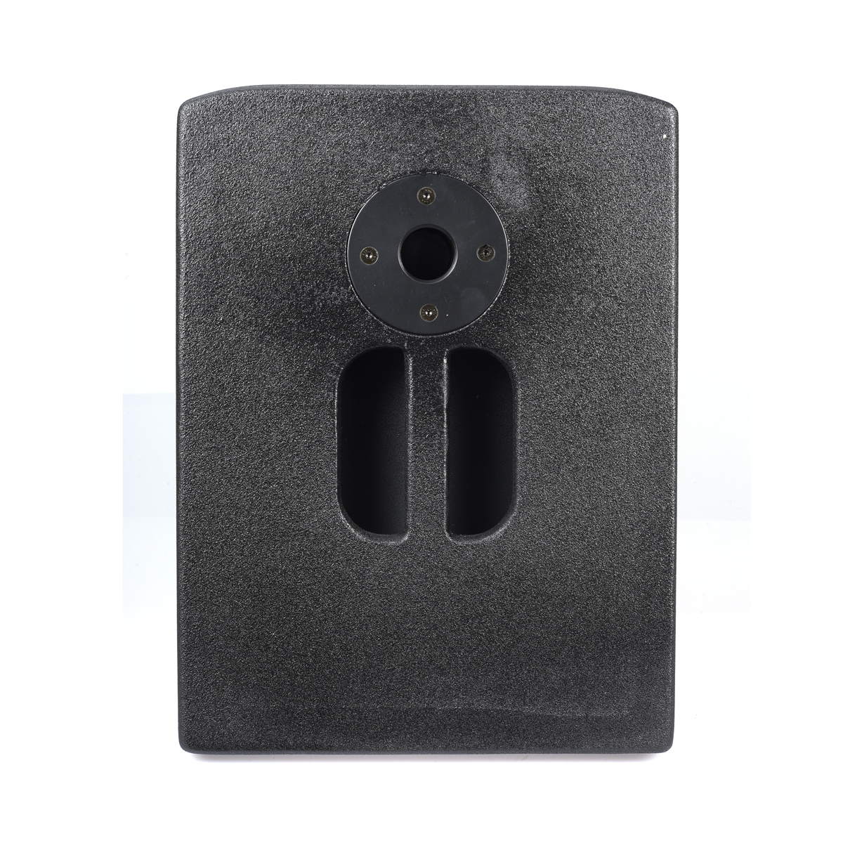 Birch cabinet in black color, with two handles for easy transport and speaker socket.