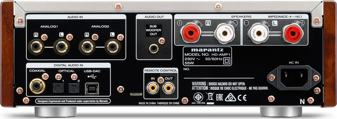 This newly-developed Marantz HD-AMP1 is a High-Class compact amplifier, with superb, elegant, classic looks. But don’t let that misguide you, its advanced switching amplifier technology blasts out an ear-splitting 70W at 4ohms, while its dual crystal clock and discrete DAC post filter with Marantz.
