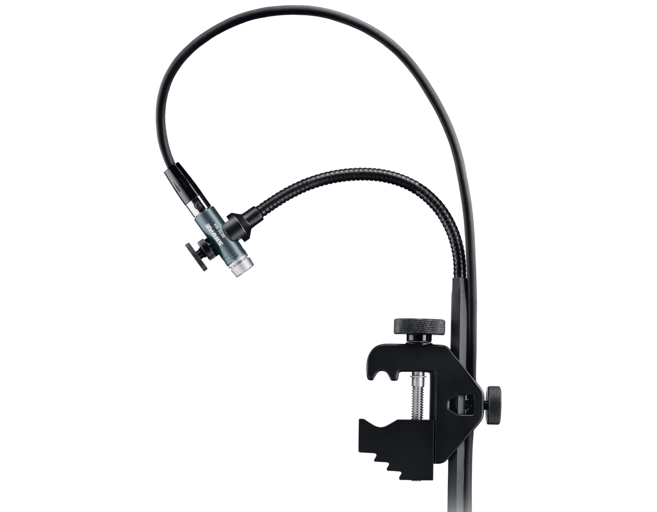 Shure Beta 98 AD/C Miniature Condenser Microphone - includes special clip for snare and toms, cardioid, warm natural  sound with nice high tone, 20Hz-20kHz, requires 11-52V phantom power, 4-pole TQG connection.
