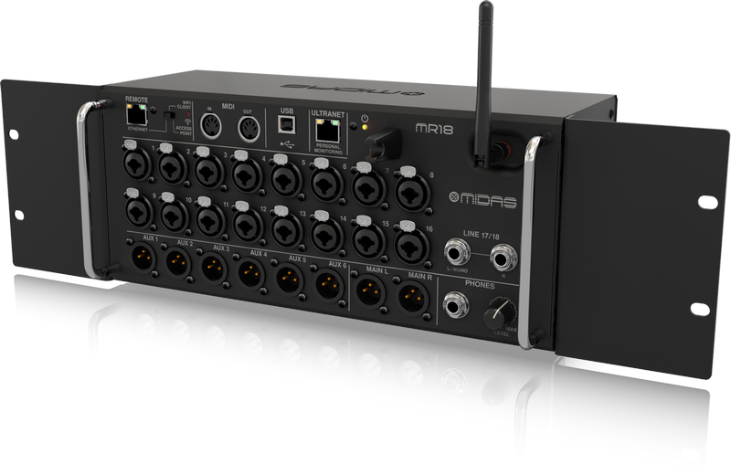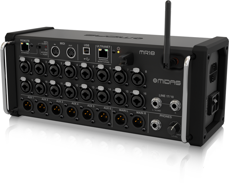 18-Input Digital Mixer for iPad/Android Tablets with 16 MIDAS PRO Preamps, Integrated Wifi Module and Multi-Channel USB Audio Interface. The MIDAS M32 completely redefined what is possible from a digital mixer – and thousands of users are enjoying the results. Now that technology has been incorporated into the small but powerful MR18 rack-mountable mixer, which will forever change the way you record and the way you play live music.