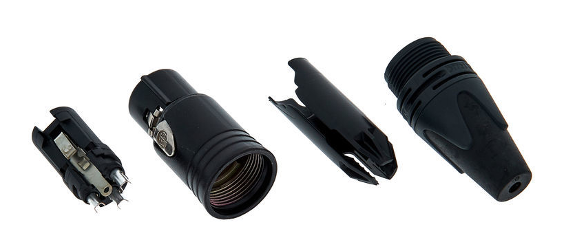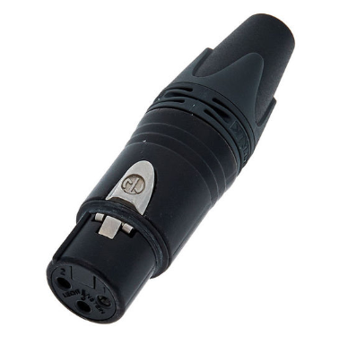 3-pole cable connector, female, rear insert. Unique cage type female contact with 7 independent contact springs. New improved chuck type strain relief. Additional ground spring contacts. (black)