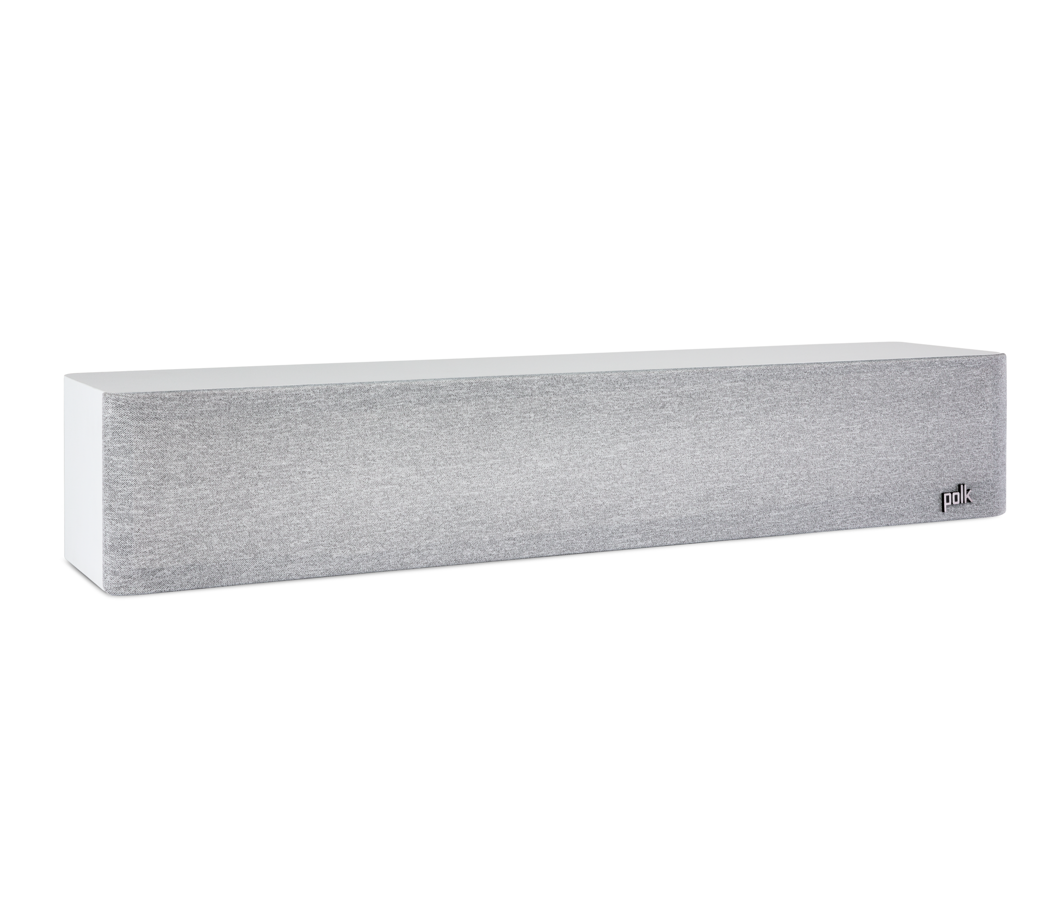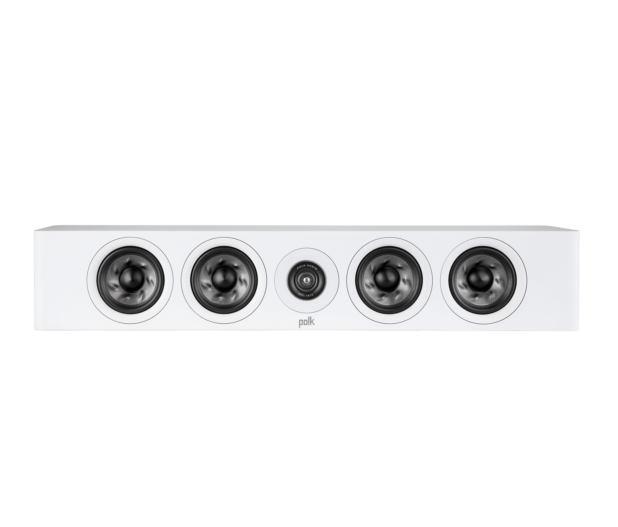 The Polk Reserve R350 slim center channel speaker is the perfect discrete speaker for your home theater. This compact 5” unit can fit almost anywhere. With a 1” Pinnacle tweeter and four 4” Turbine woofers, you get clear, crisp vocals for your favorite movies and shows. With exceptional versatility, the R350 is also a left/center/right speaker, so you can use up to three units as your front stage.