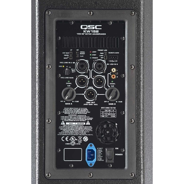 If it's power you're after, then this is your loudspeaker. QSC built the KW152 to give you big, clean, room-filling performance, to the tune of 1,000 watts. And, thanks to the Class D design, this speaker won't break your back when it's time to set up or tear down! It also puts an array of connection options conveniently at hand. The back panel gives you mic, line, and even RCA inputs plus gain controls, right where you need them. You can even mix up to three audio sources internally and daisy chain to another KW152, via the balanced output.
