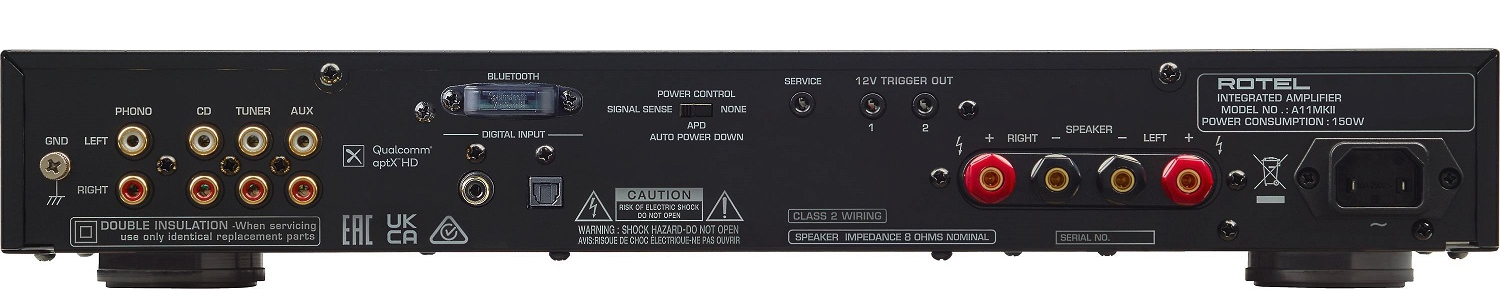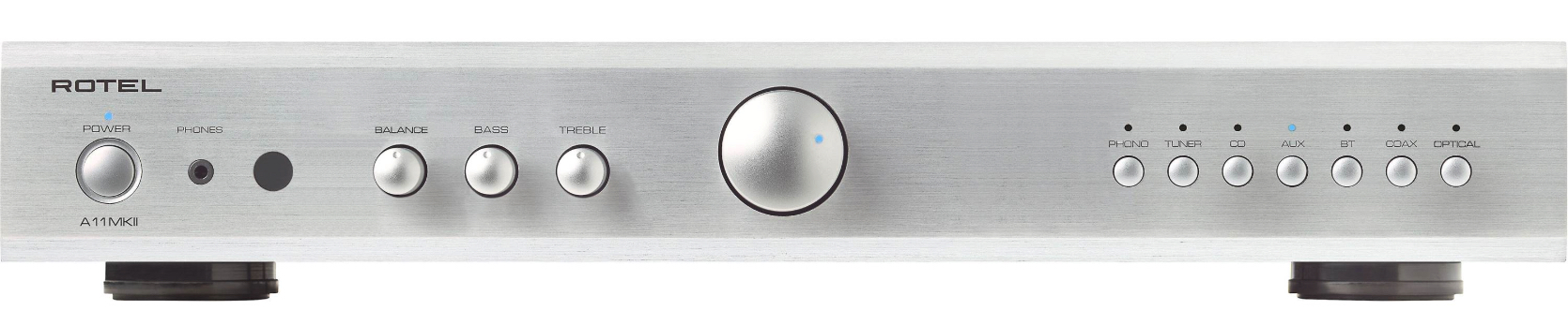 The A11 Integrated Amplifier is based on the successful 14 Series models. The output power utilizes classic Rotel Class AB amplification rated at 50 Watts per channel into 8 ohms. Source inputs include an MM Phono Stage for classic vinyl lovers, aptX and AAC Bluetooth for wireless audio streaming and an array of 4 RCA analogue inputs for ultimate flexibility. The front panel graphic display and IR remote control ensure effortless and simplified control of your audio.