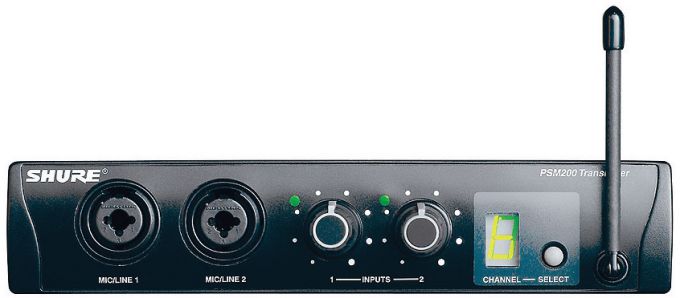 The EP2T TransMixer is a breakthrough design for in-ear monitoring. It allows the user to connect two line-level or mic–level inputs directly into the transmitter. The two signals can then be mixed independently. You can connect microphones or instruments directly to the inputs, use line outputs from a mixing console, or connect it to Shure’s Aux-Pander[TM].