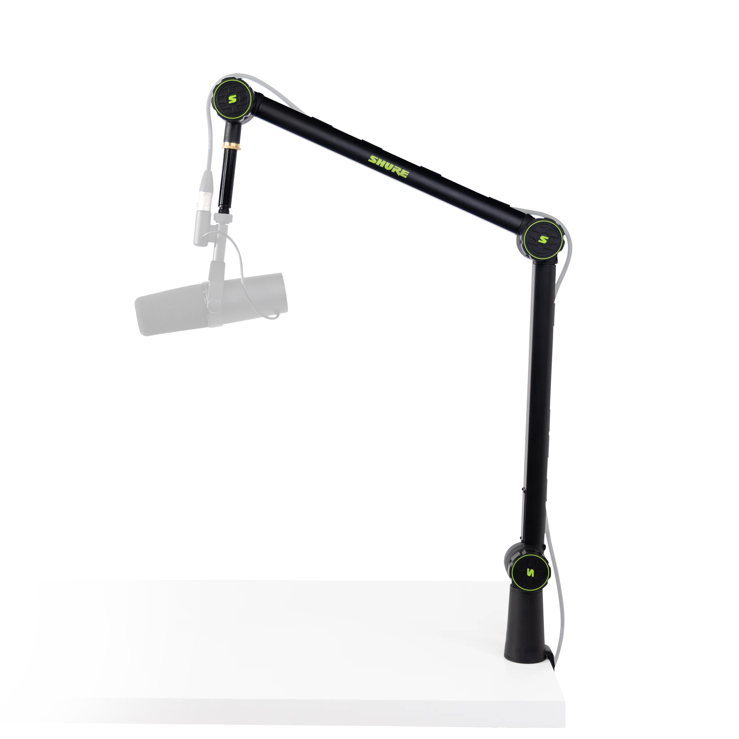 The Gator Articulating Desktop Mic Boom Stand is designed to hold your preferred Shure or other-brand vocal mic for a wide variety of applications: broadcasts, podcasts, live streams, & many more. Microphone sold separately.