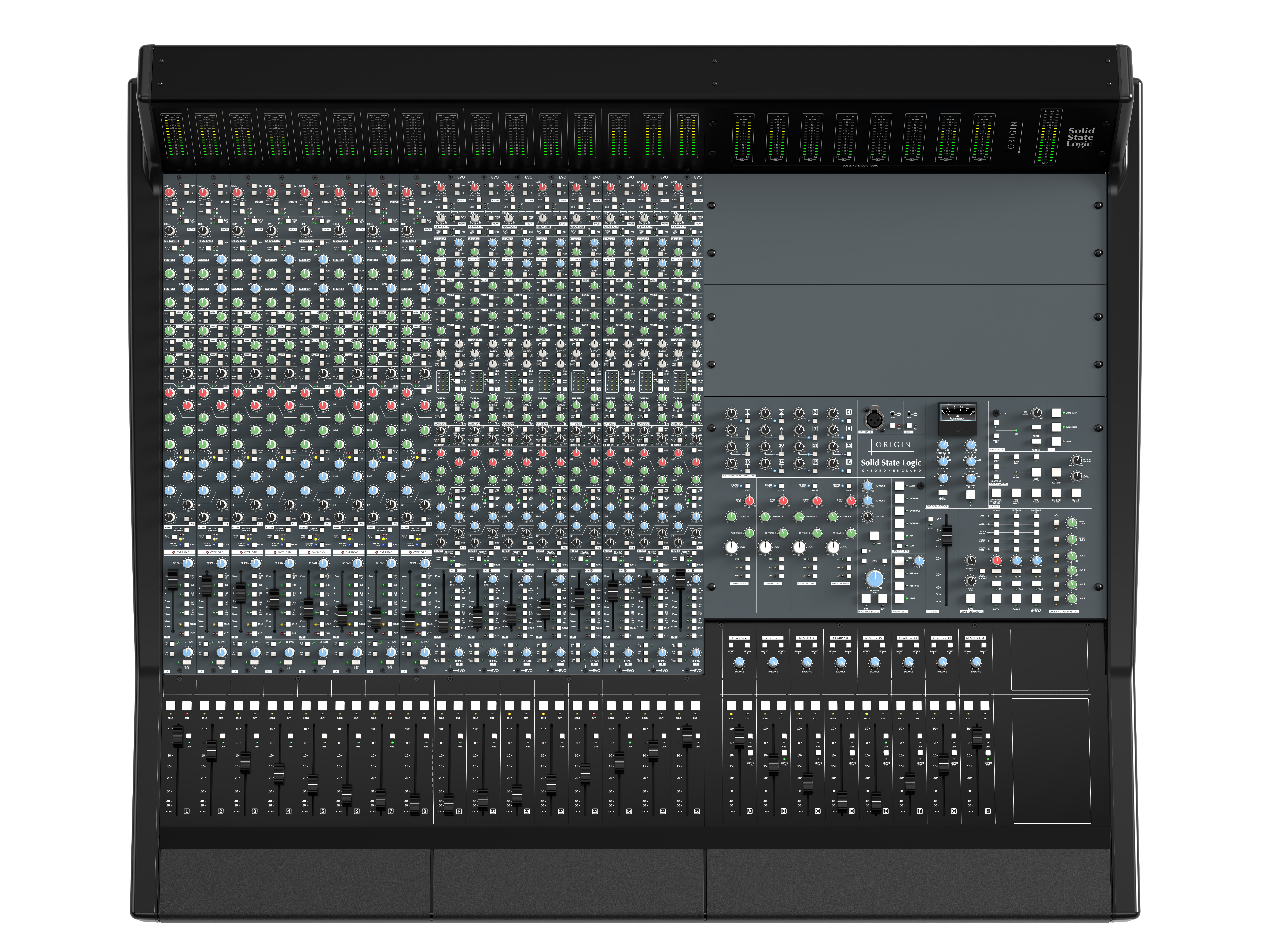 Note: For existing Origin owners who wish to update their consoles with EVO channel strips, SSL has made available the Evo 8-channel Upgrade Kit. Please contact your Sweetwater Sales Engineer for details.