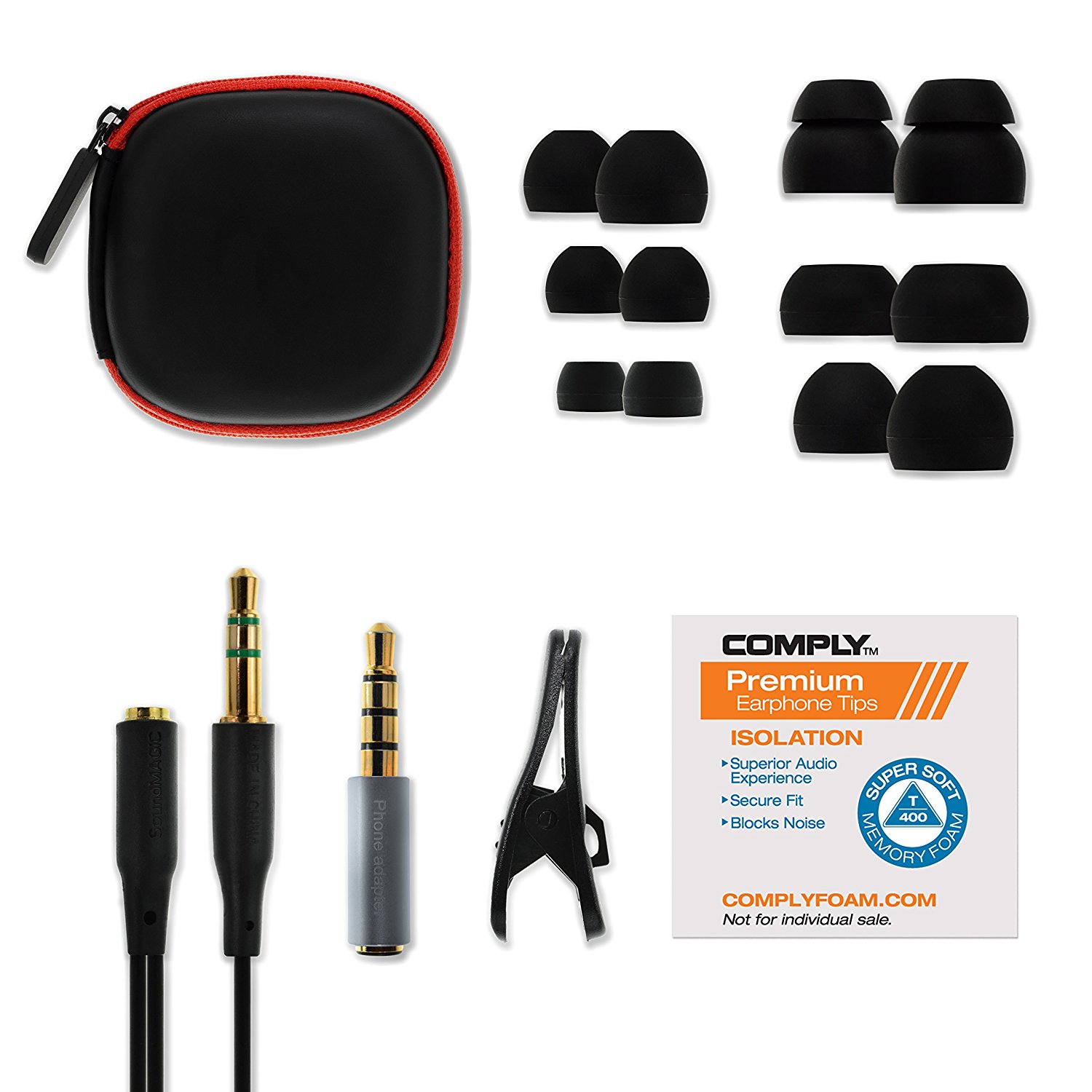 Ergonomically designed sound tubes sit perfectly in the ear canal and stay in the ear comfortably. The in-ear design combined with the right eartips seals music in and leaves unwanted noise out. Included in the delivery are multiple silicone and Comply eartips to ensure the correct fit for every user.