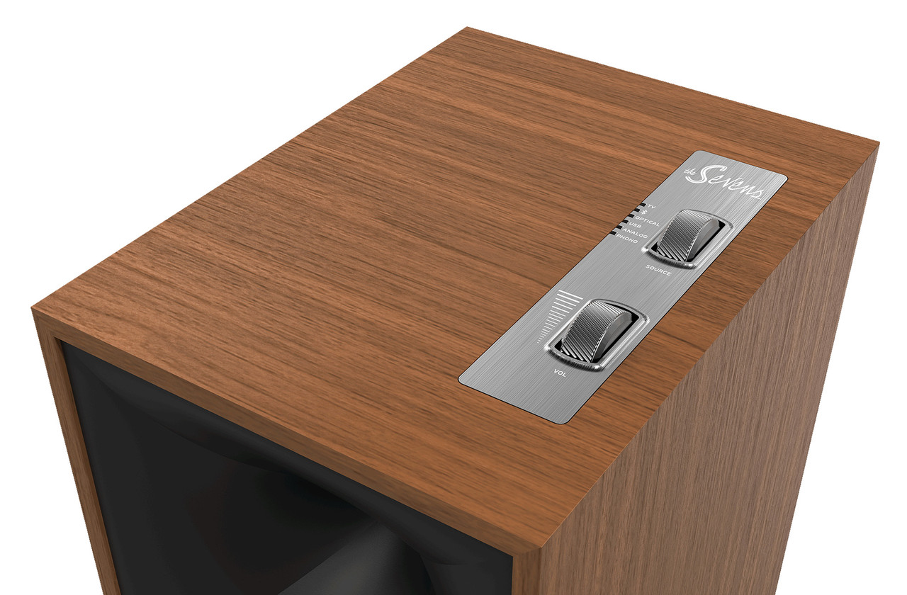 Handcrafted with real wood finishes, premium metal controls, fabric grilles and cork pads — the Klipsch Sevens Powered Monitors are quality-designed to impress.