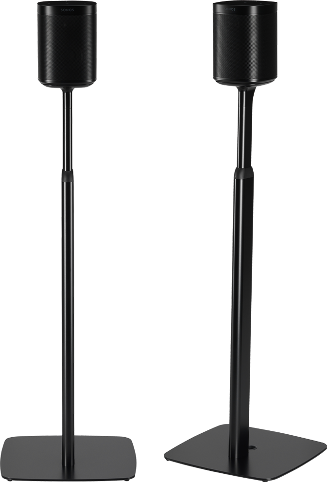 Pair of secure and adjustable floor stands for home cinema surrounds.