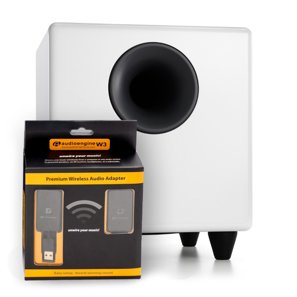 The Audioengine S8 Wireless Sub works with any stereo receiver or powered speakers. The S8 Wireless Subwoofer includes the best-selling Audioengine W3 Wireless Adapter.