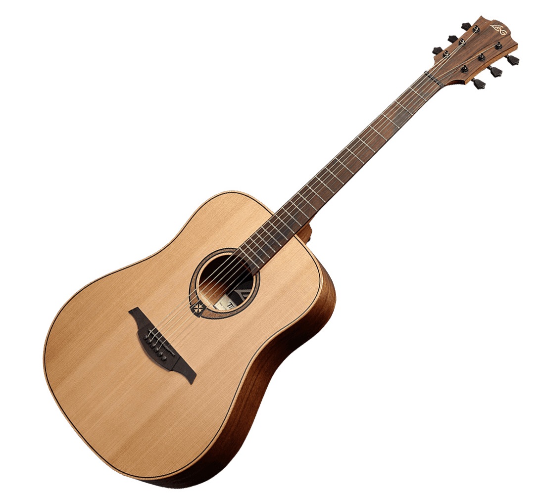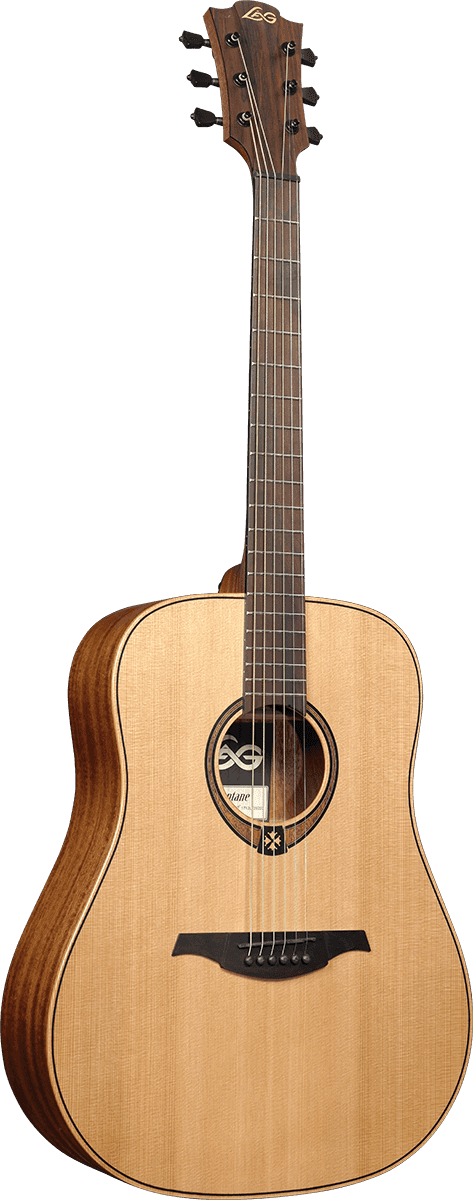 Acoustic guitar Tramontane Dreadnought. Solid red cedar lid, side, back and arm from Tropical Khaya, brownwood fretboard, black metal parts, satin natural color.